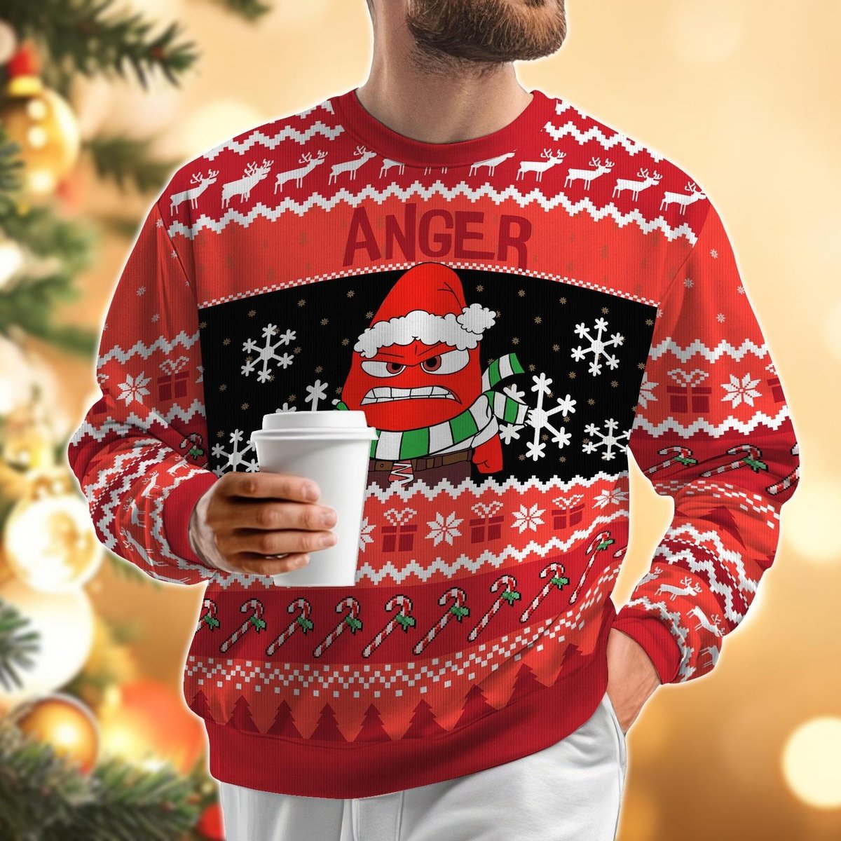 Anger Inside Out Ugly Christmas Sweater Funny Cartoon Holiday Pullover Gift