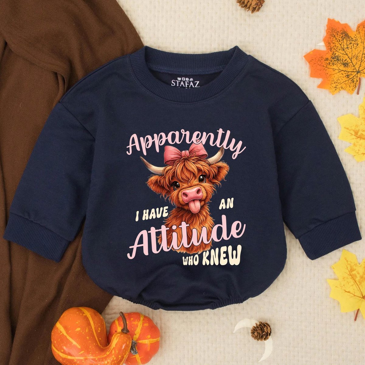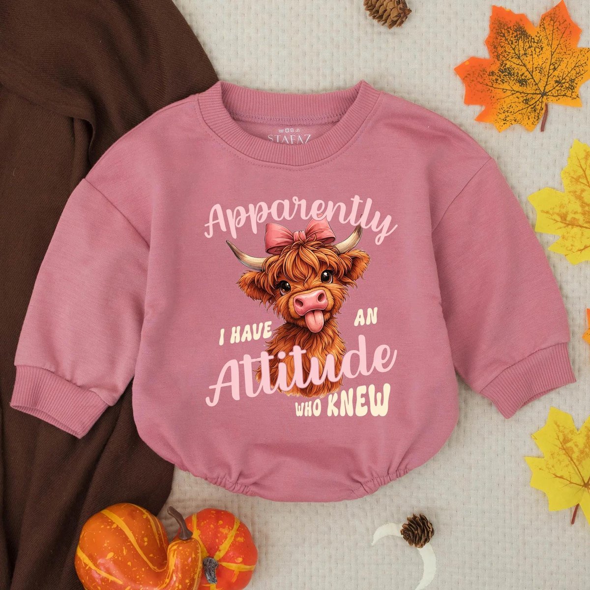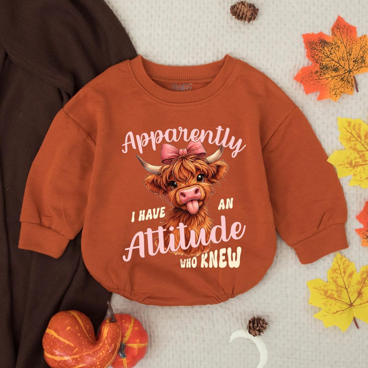 Apparently I Have An Attitude Who Knew Bubble Romper Highland Cows Funny Girl Clothes Country Sweats