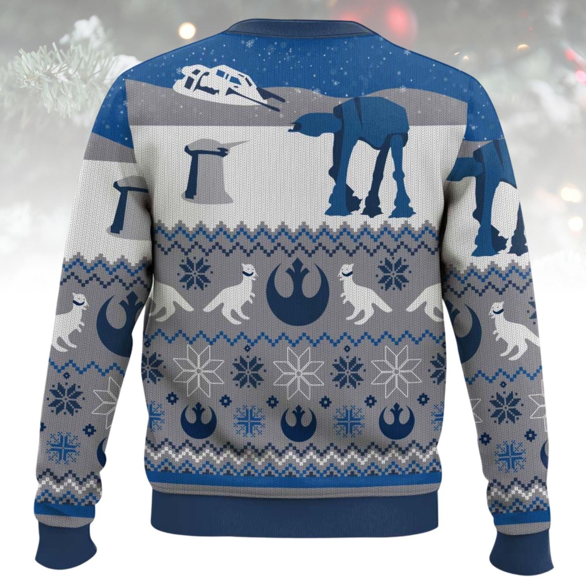 AT-AT Walker Blue Star Wars Hoth Scene Ugly Christmas Sweater Holiday Knit Gift