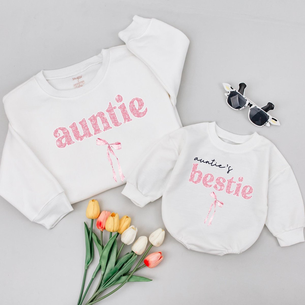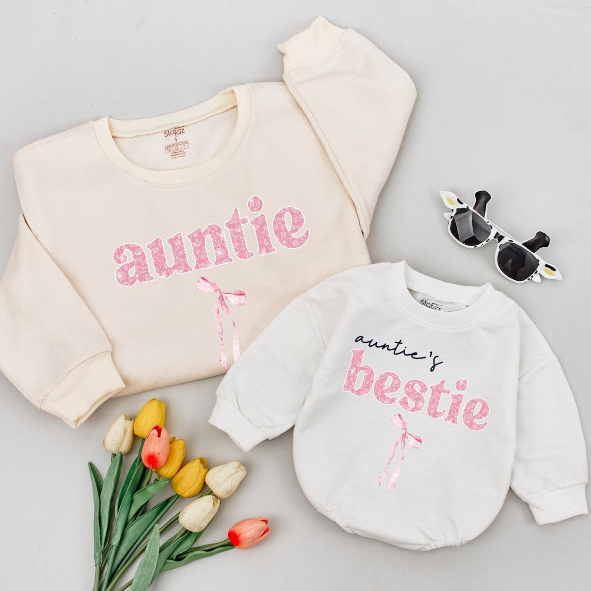 Auntie And Auntie’s Bestie Sweatshirt Aunt And Aunt’s Bestie Shirts Aunt Niece Bow Outfit Aunt And 434