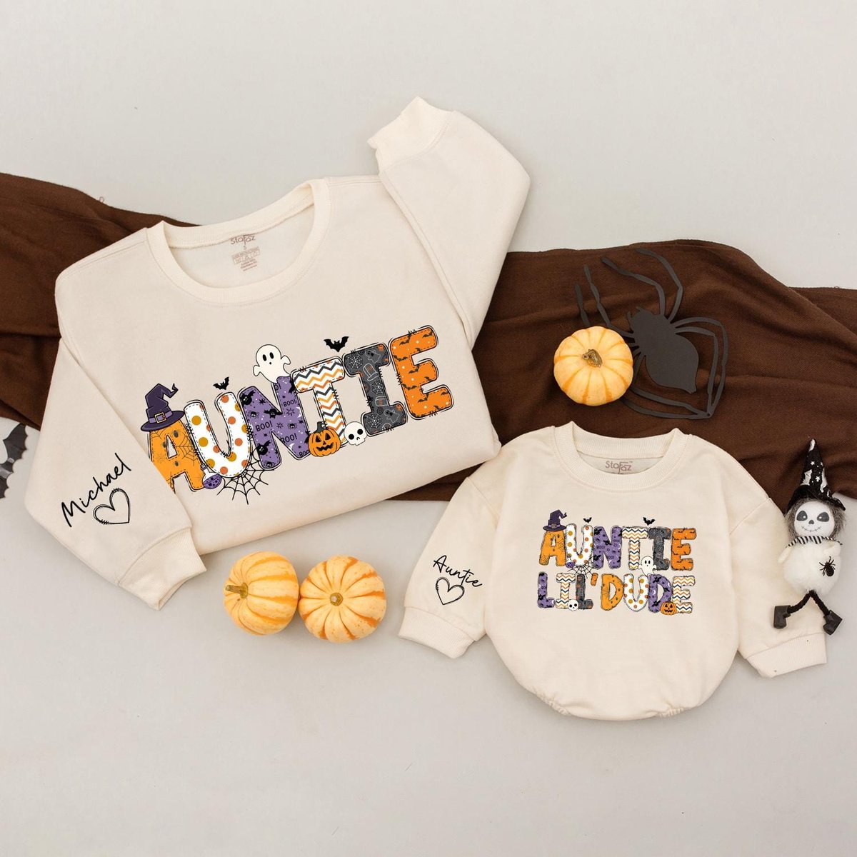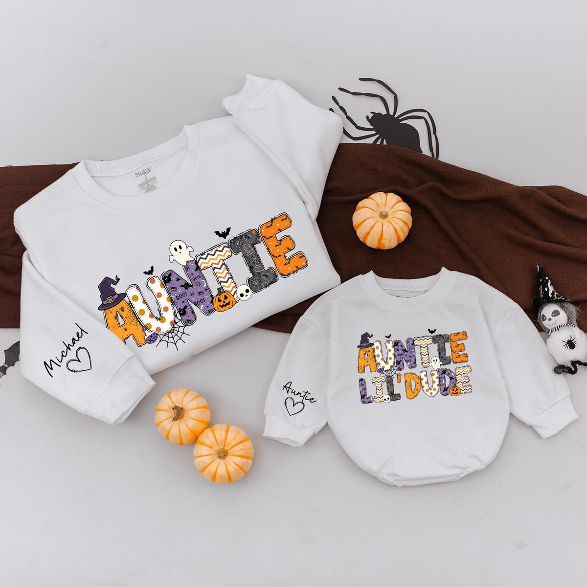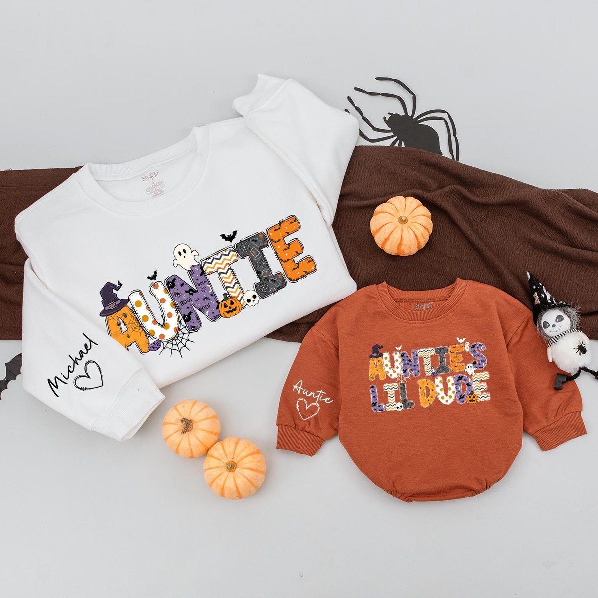 Auntie and Auntie’s lil dude Halloween Sweatshirts Halloween Matching Sweater Auntie Niece Nephew C 435