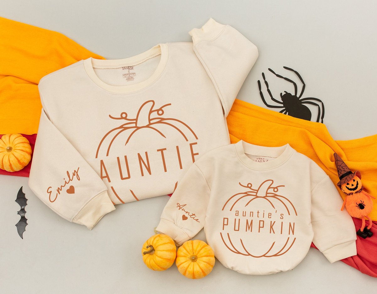 Auntie and Auntie’s Pumpkin Fall Sweatshirts Auntie Matching Sweatshirt Auntie Fall Gift clothes Au 177