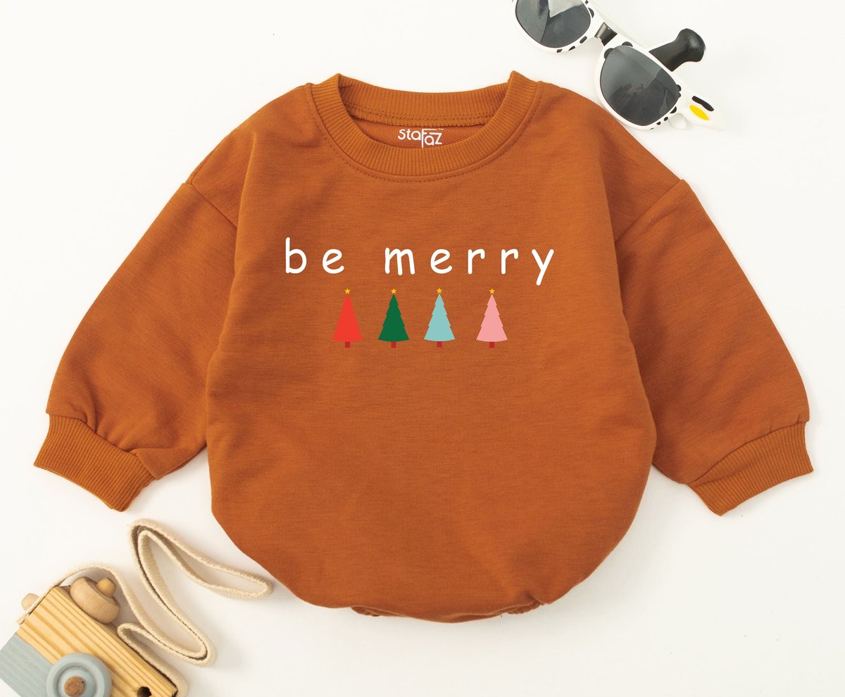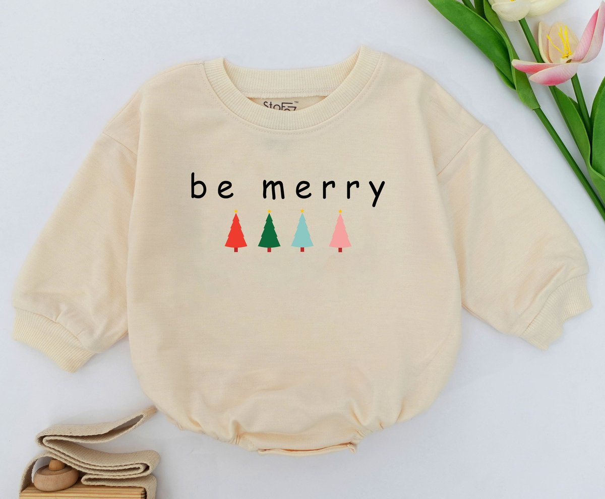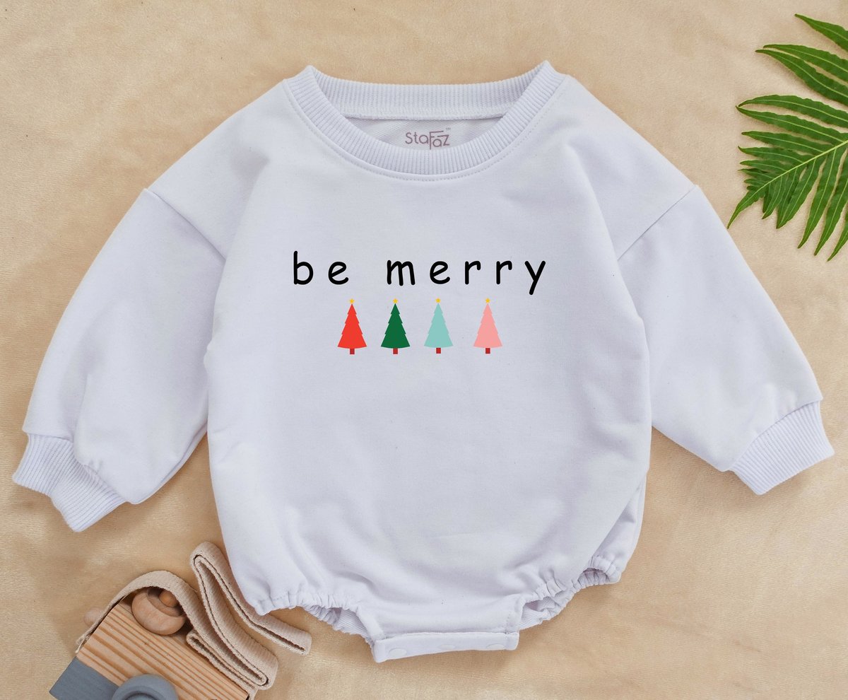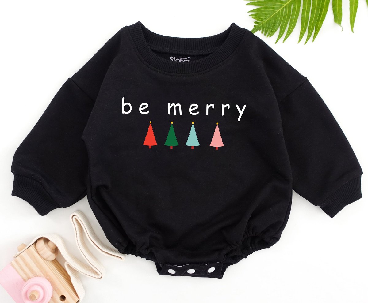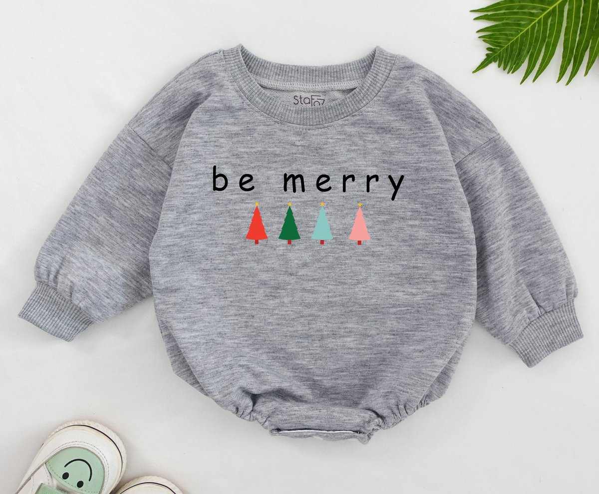 Baby Christmas Outfit Holiday Bubble Romper Sweatshirt Be merry 1st Christmas Romper Toddler Merry C 156