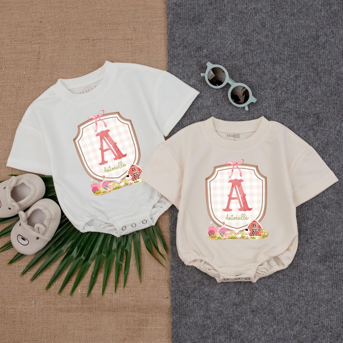Baby Farm Girl T shirt Bubble Romper Country Baby Outfit for Girls Farm Animal Birthday Suit Custom 188