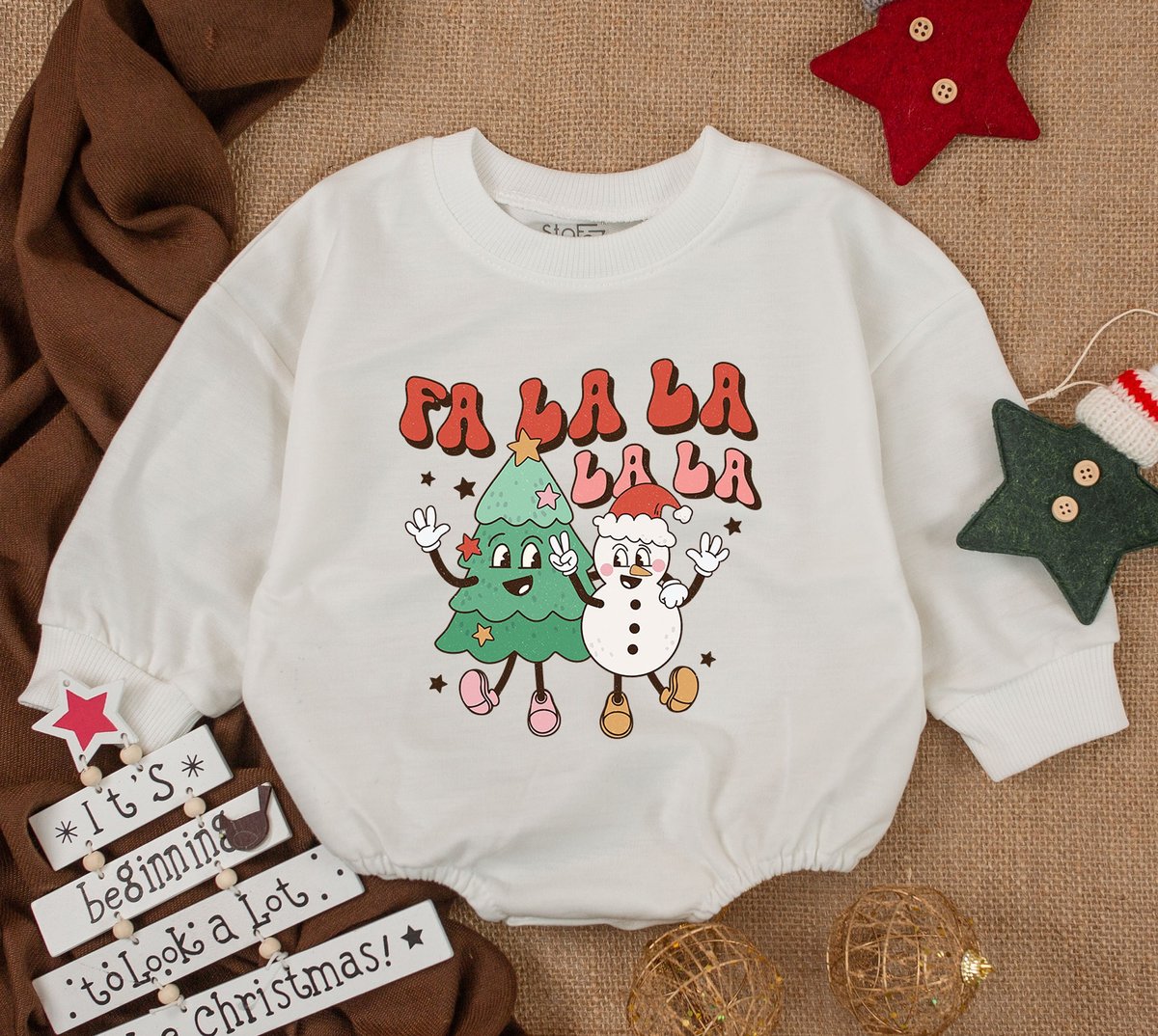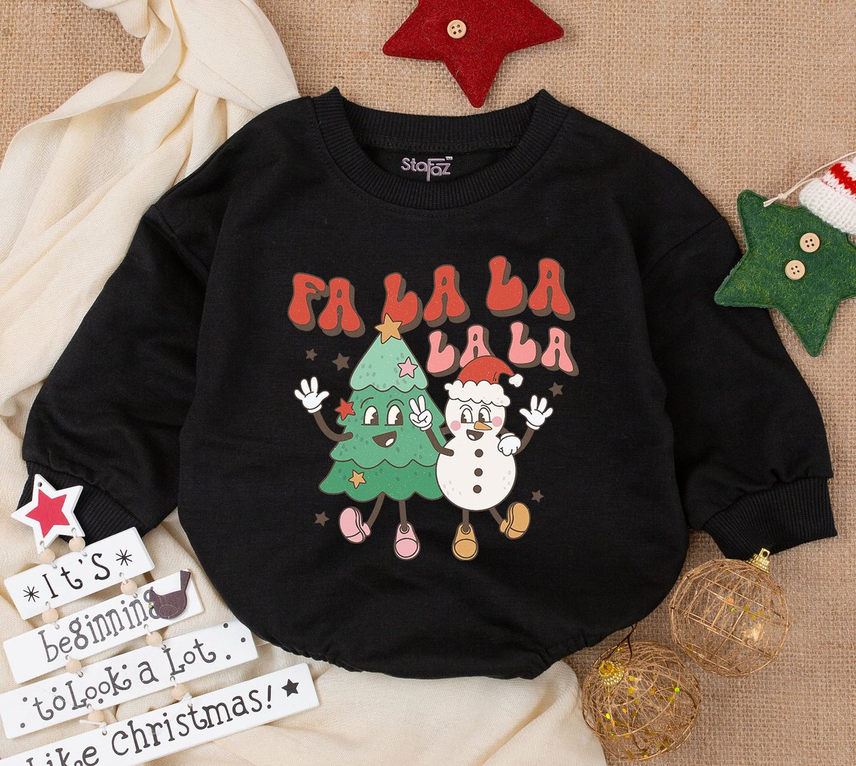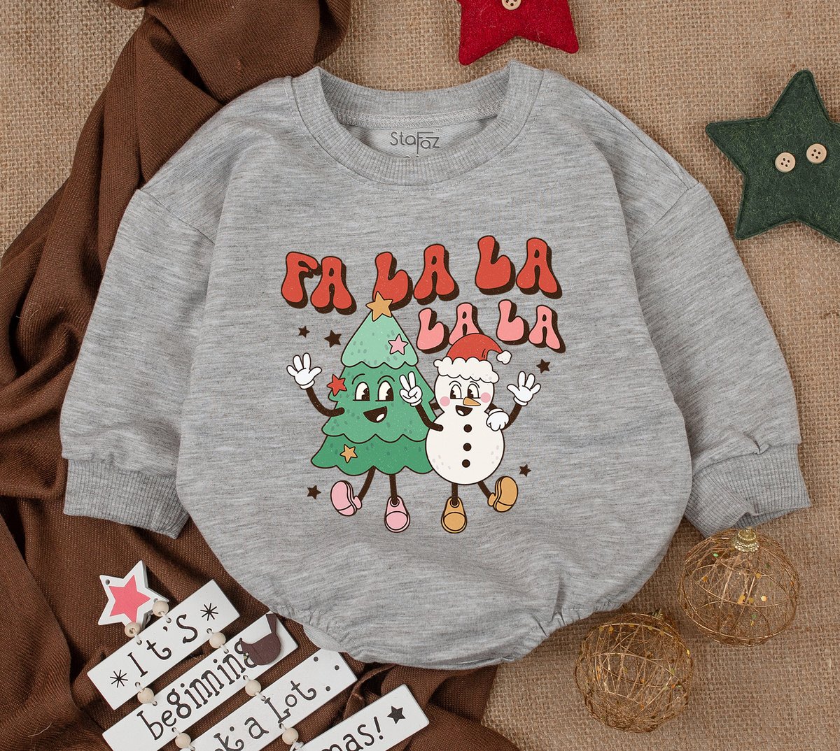 Baby Girl Christmas Outfit Retro Holiday Bubble Romper Sweatshirt 1st Christmas Romper Toddler Fa La 154
