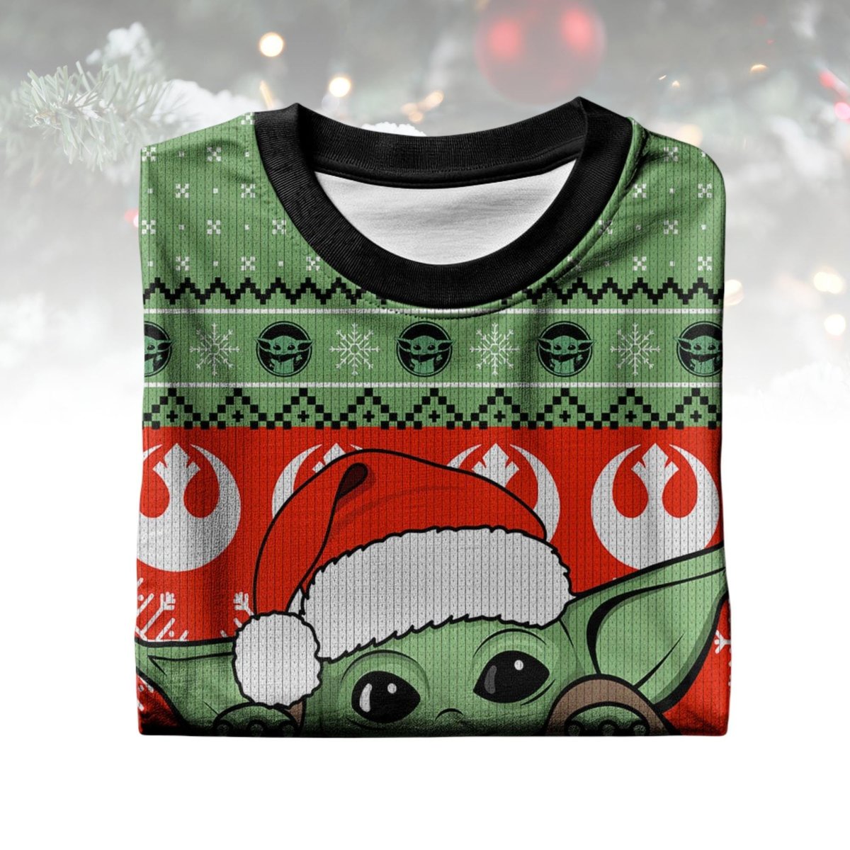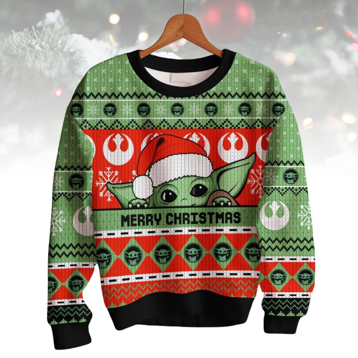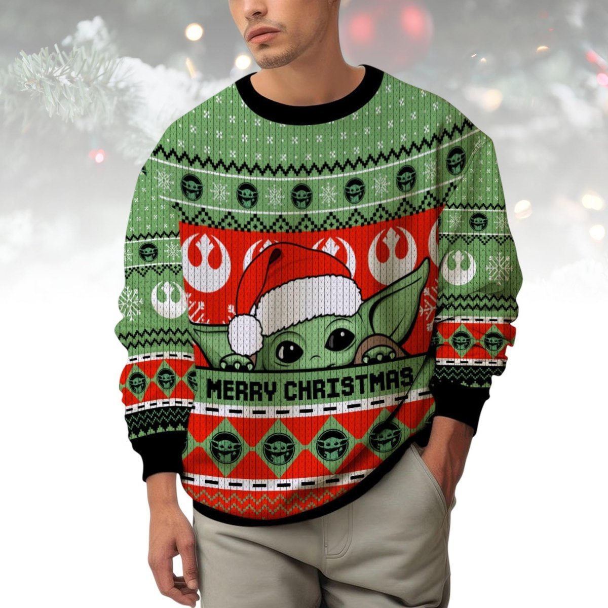 Baby Yoda Green Merry Christmas Star Wars Ugly Christmas Sweater Holiday Knit Gift