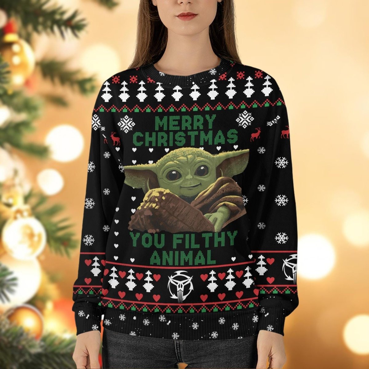Baby Yoda Merry Christmas You Filthy Animal Ugly Christmas Sweater Holiday Gift