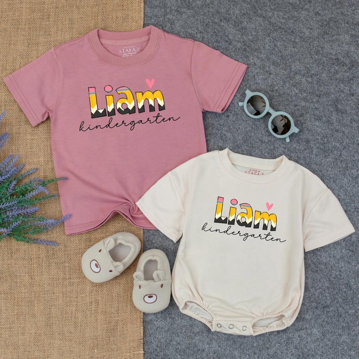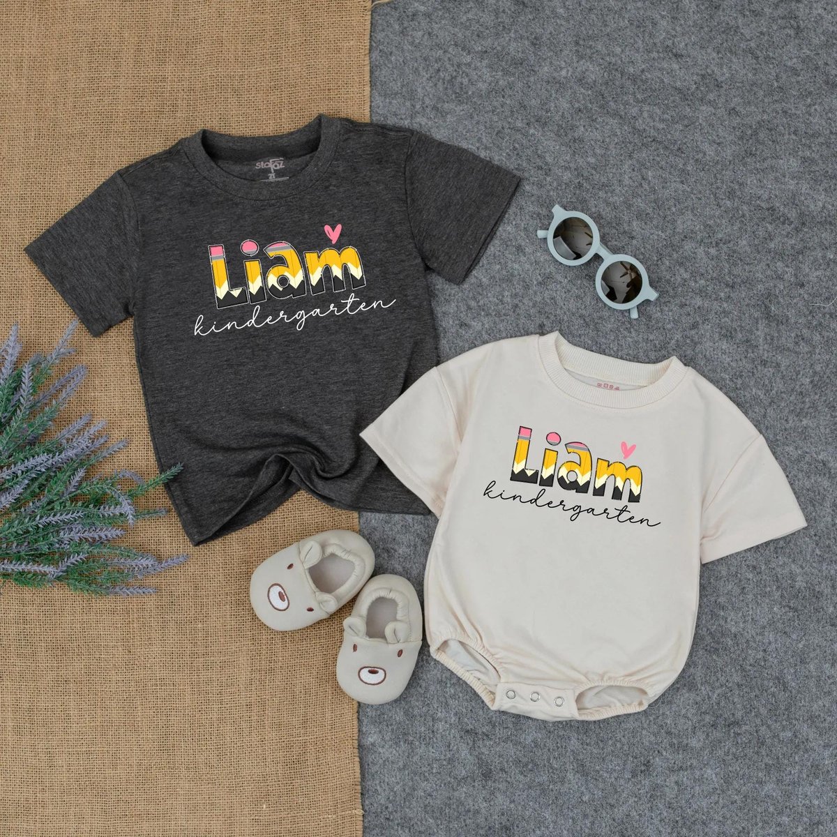 Back to School Kid T shirt First Day of School Custom Pencil Kids Name Bubble Romper School for Kid 431