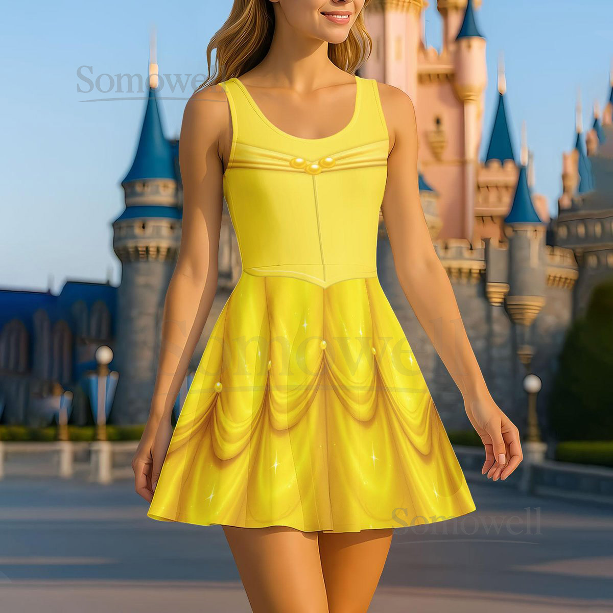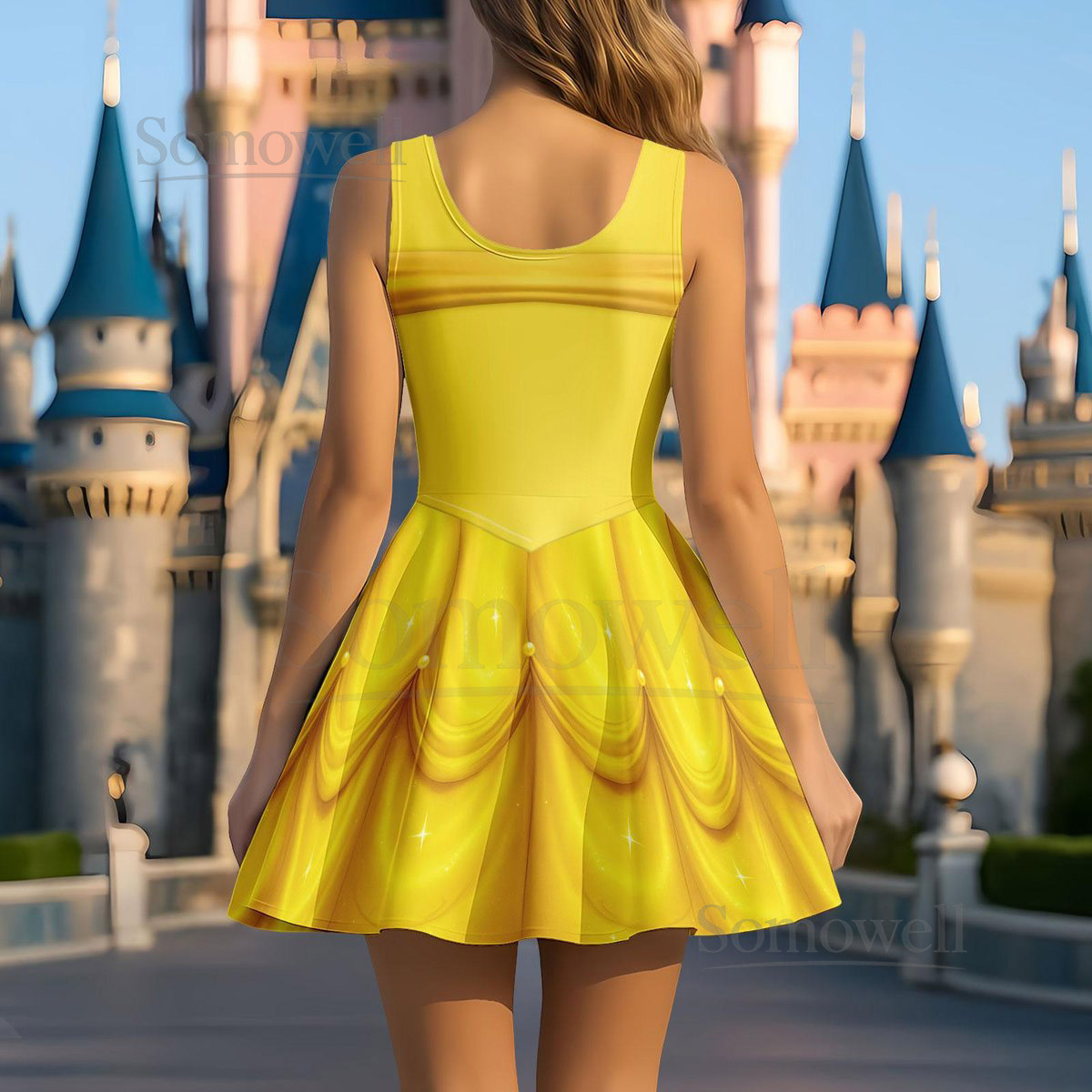 Belle Princess Skater Dress Disney Princess Women Dress Beauty And The Beast Casual Dress Halloween Cosplay Costume Gift For Her_7