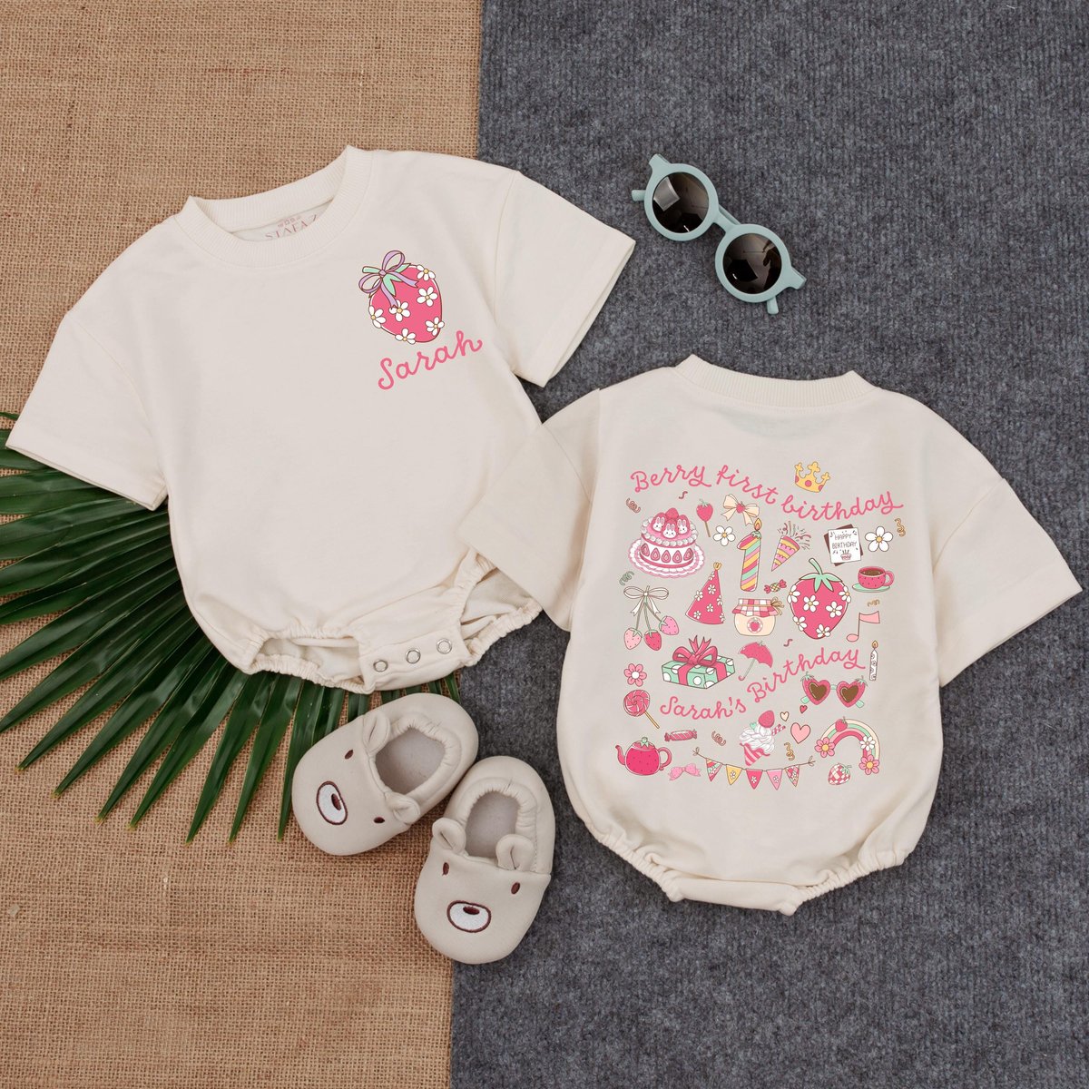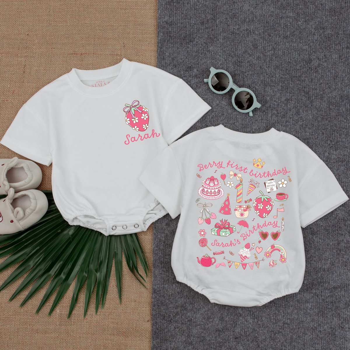 Berry First Birthday Baby Romper Personalized 1st Birthday Bodysuit Cute Strawberry Romper First Bir 434