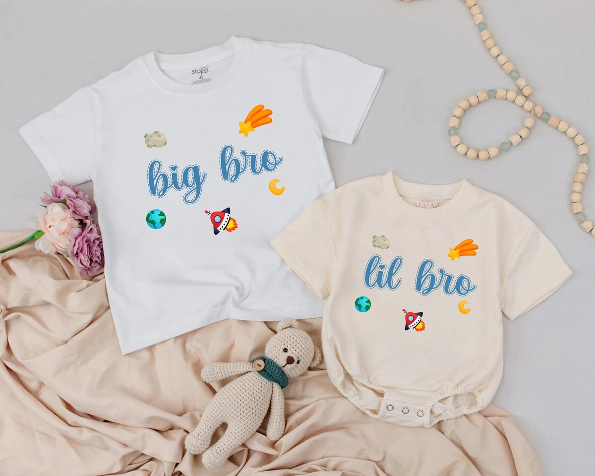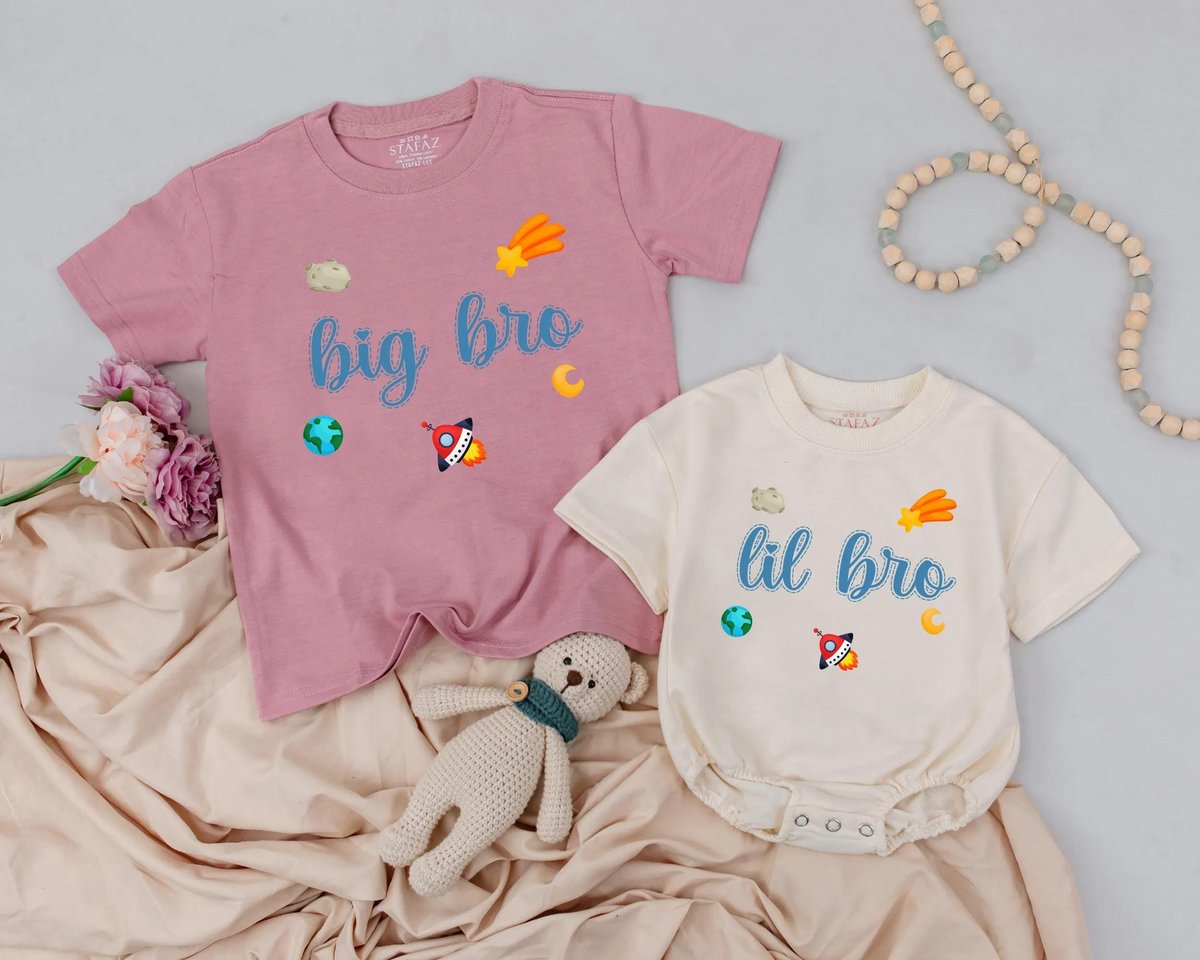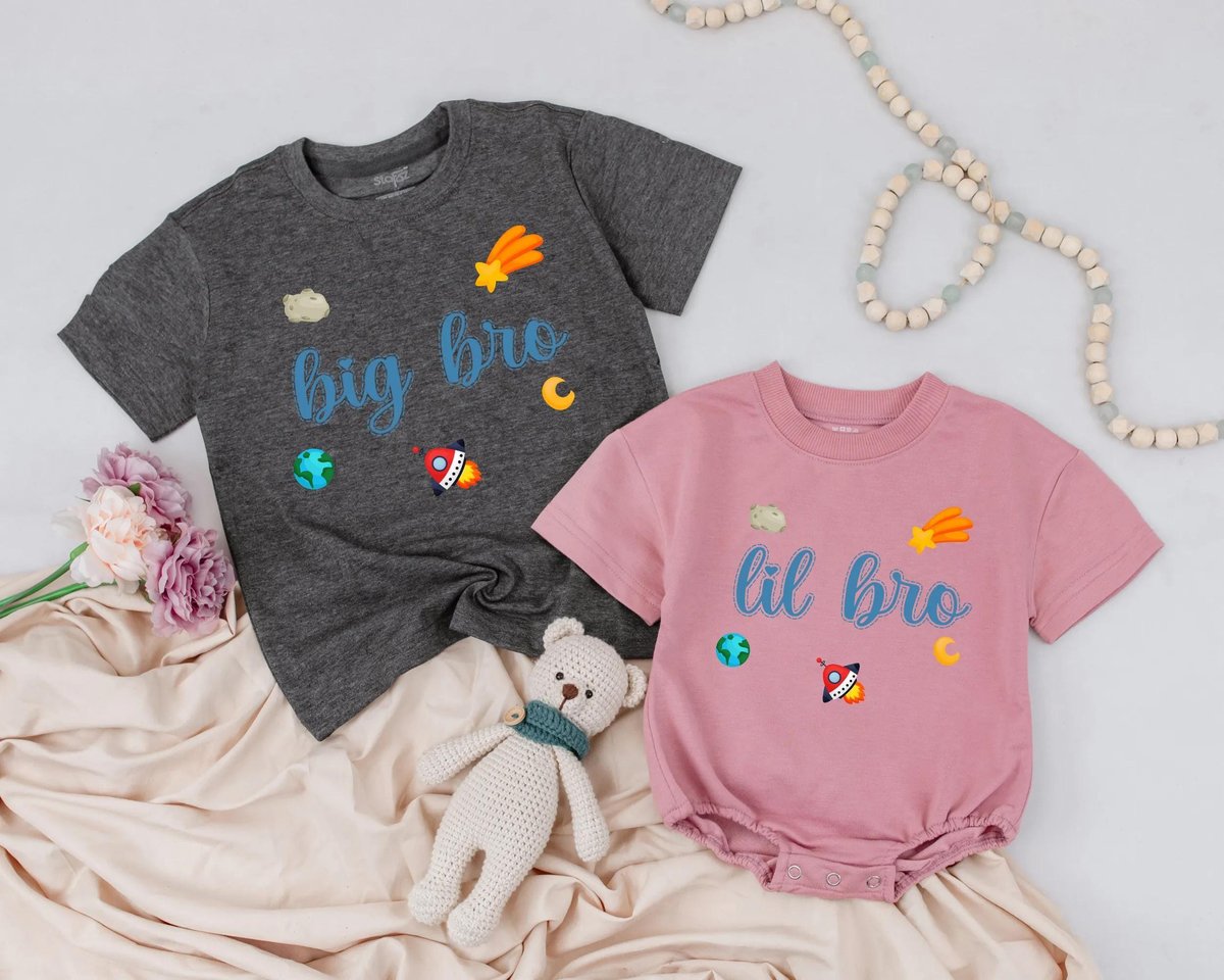 Big Bro Lil Bro Matching Outfits Sibling Shirts Baby and Toddler Matching Clothes Newborn Gift Space 189