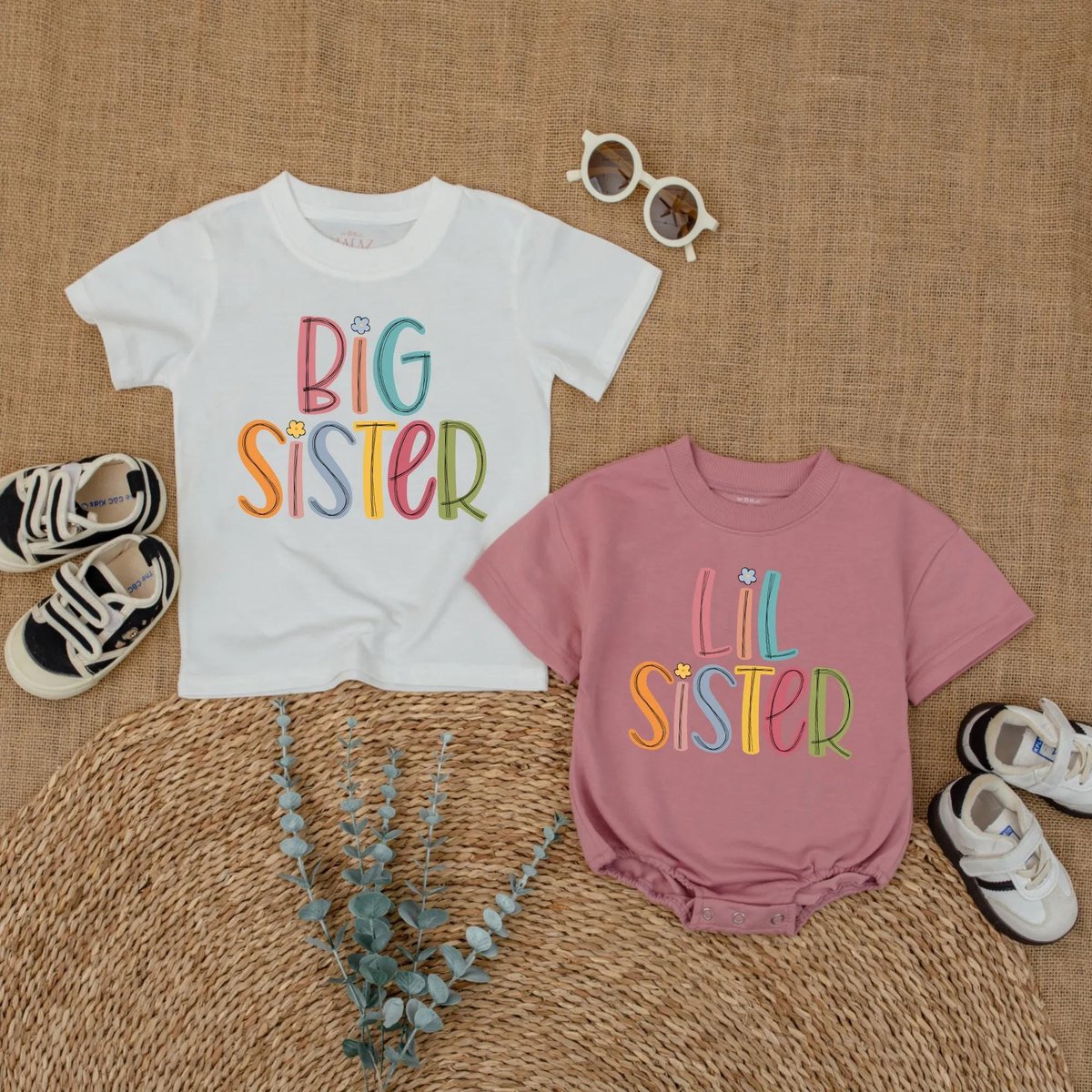 Big Sister Lil Sister Matching Shirts Lil Sister Baby Romper Shirt for Big Sister Baby Girl Romper a 436