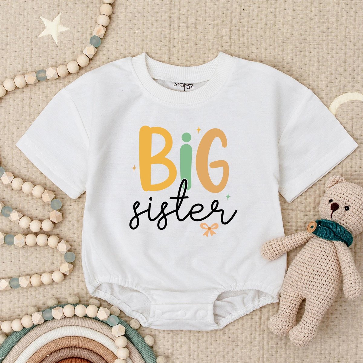 Big Sister Little Sister Matching Family Bubble Romper Custom Sibling Outfit for Girls Baby Girl Out