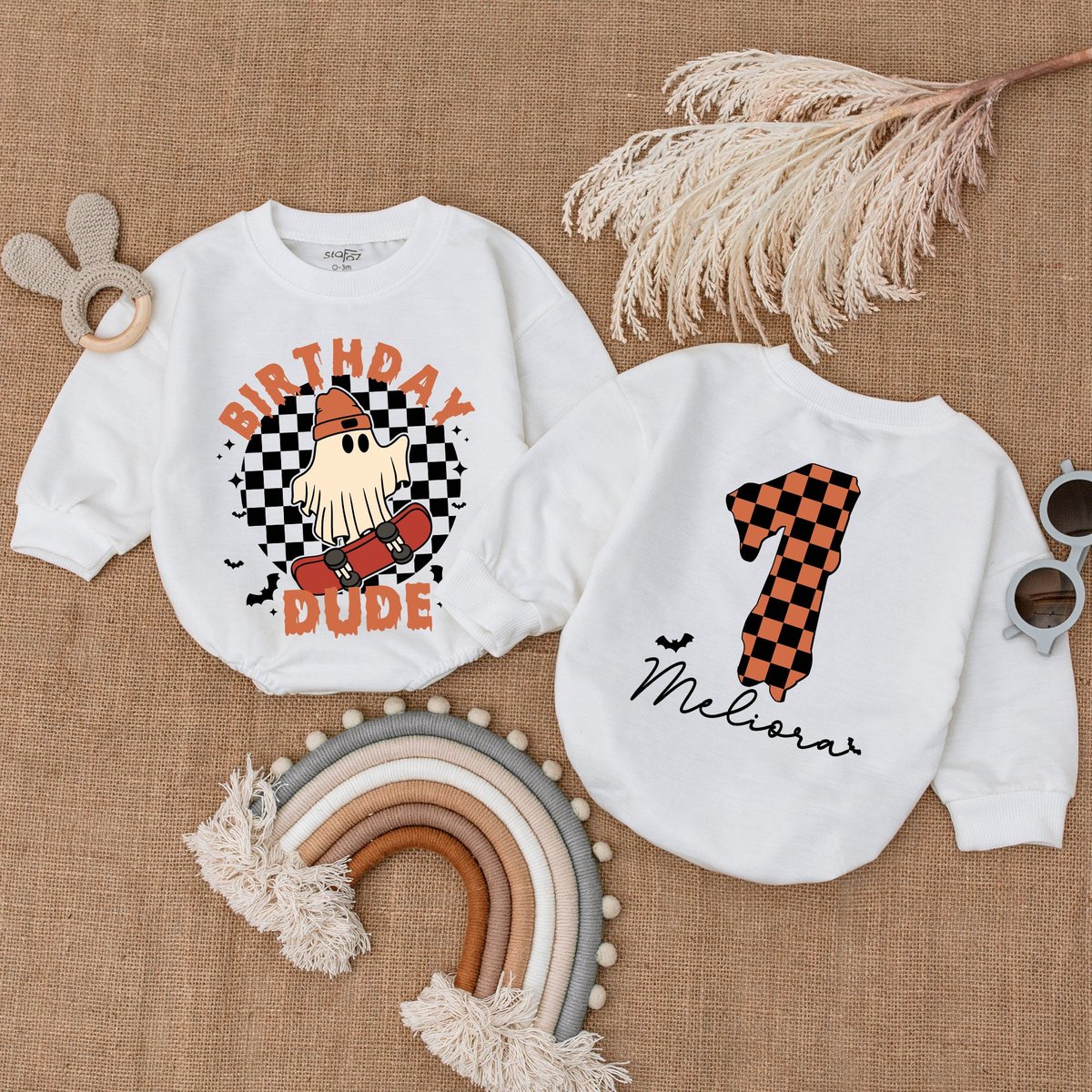 Birthday Dude Halloween Ghost 1st Birthday Romper My First Halloween Outfit Bubble Romper Baby Showe 175