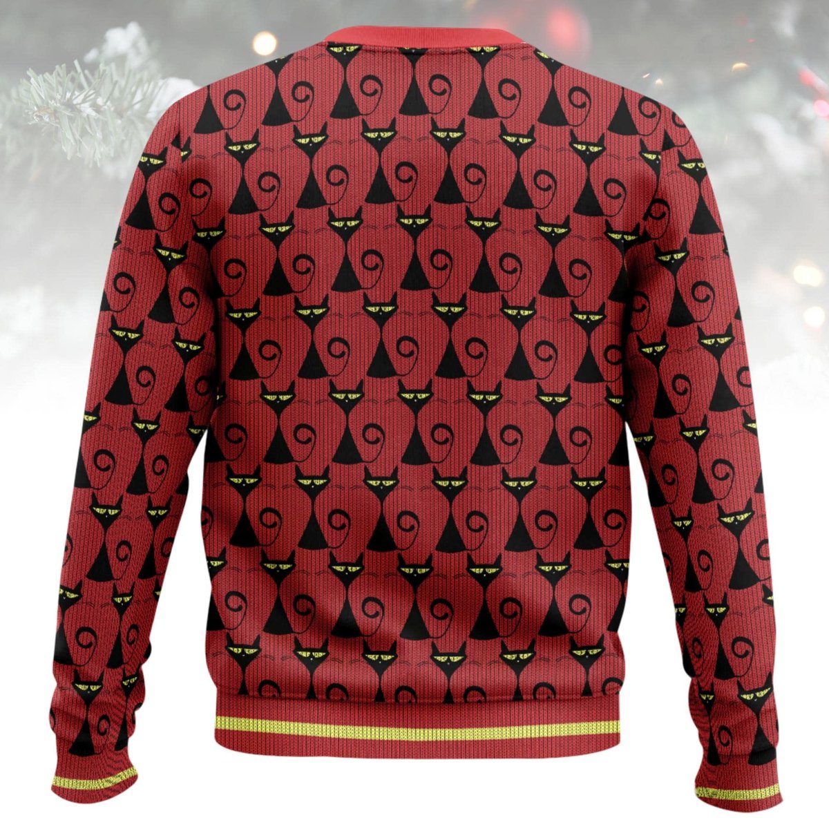 Black Cat Pattern Red Ugly Christmas Sweater Holiday Knit Gift