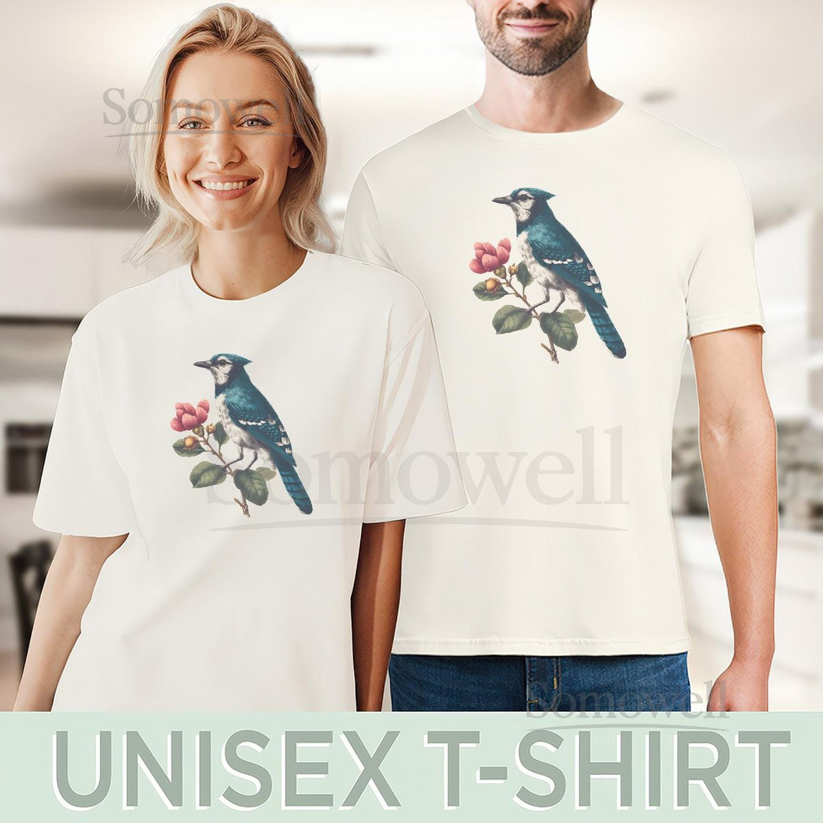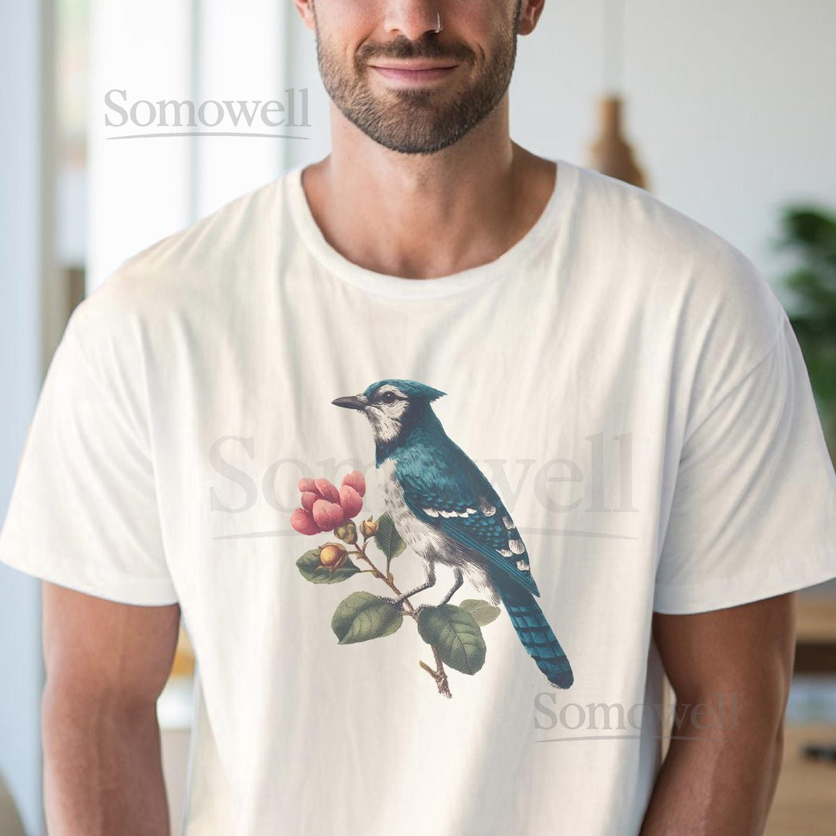 Be the first to review “Blue jay bird floral graphic nature illustration animal art t shirt botanical garden bird lover tee_89”