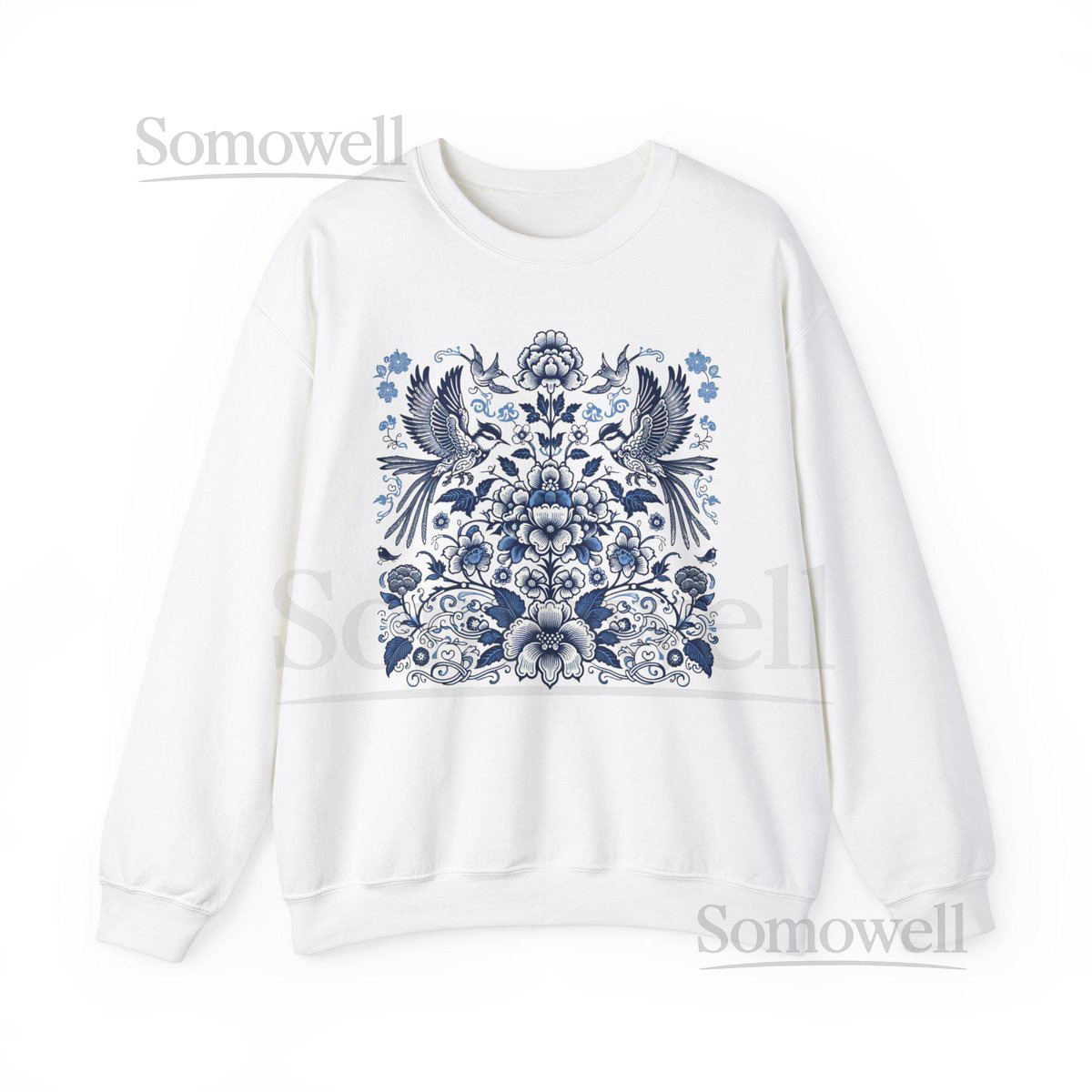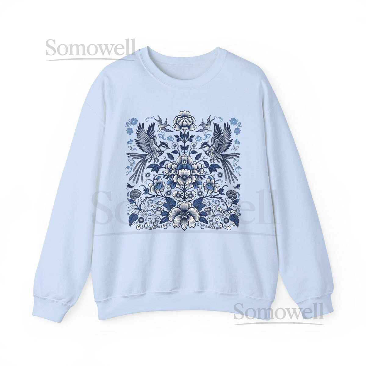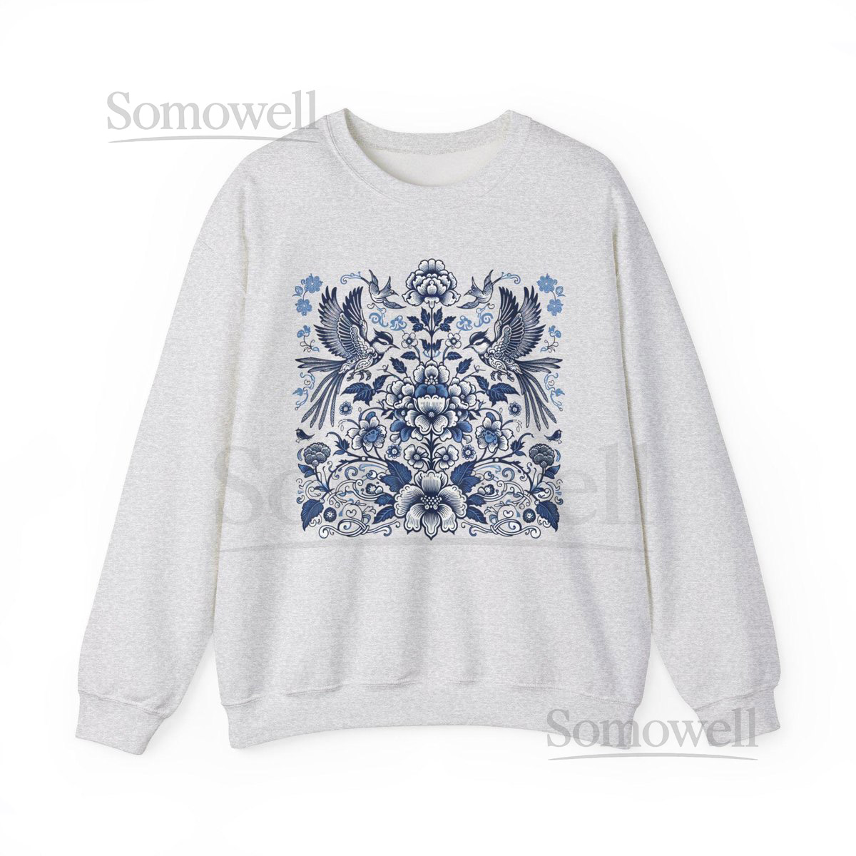 Blue Jay Folk Art Sweatshirt Chinoiserie Aesthetic Shirt Blue Bird Shirt Bird Sweatshirt Folk Art Floral Shirt Bird Lover Sweatshirt_98