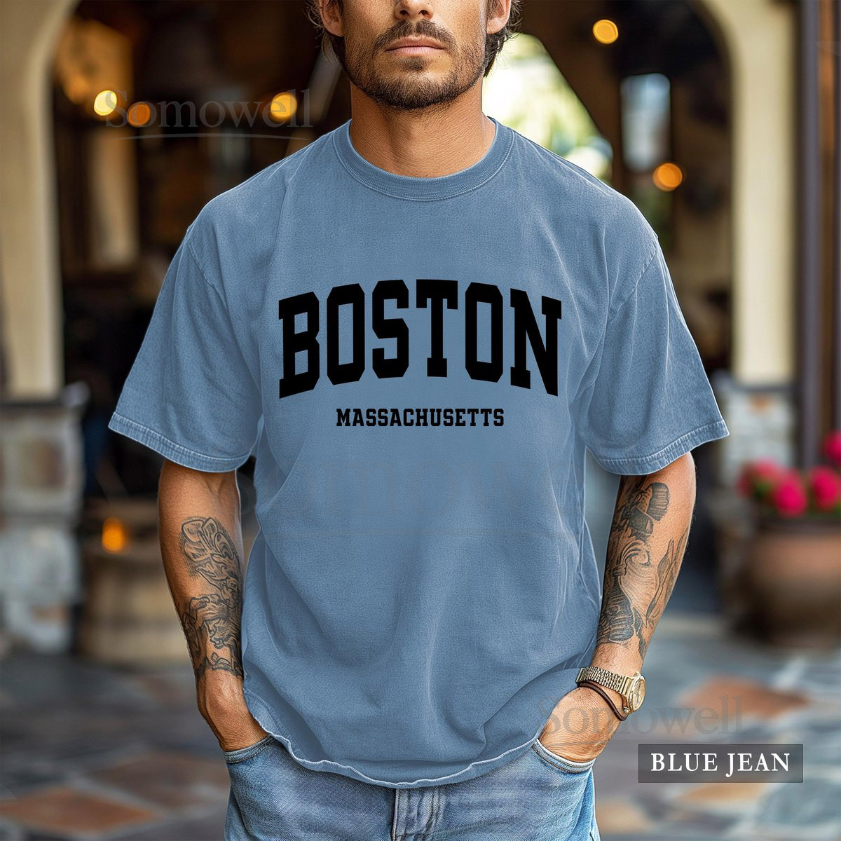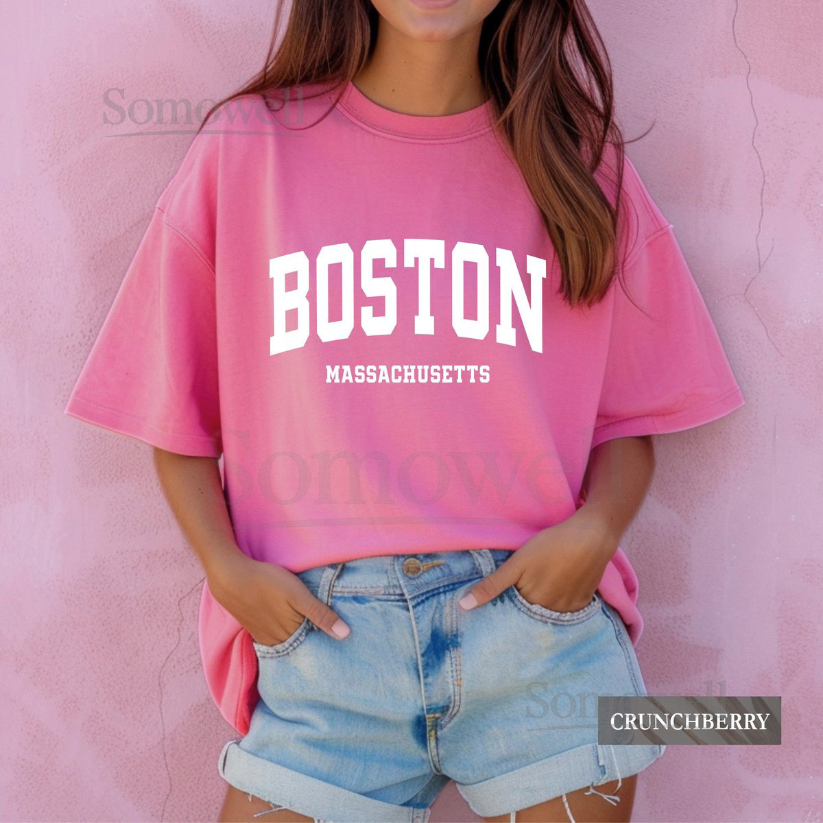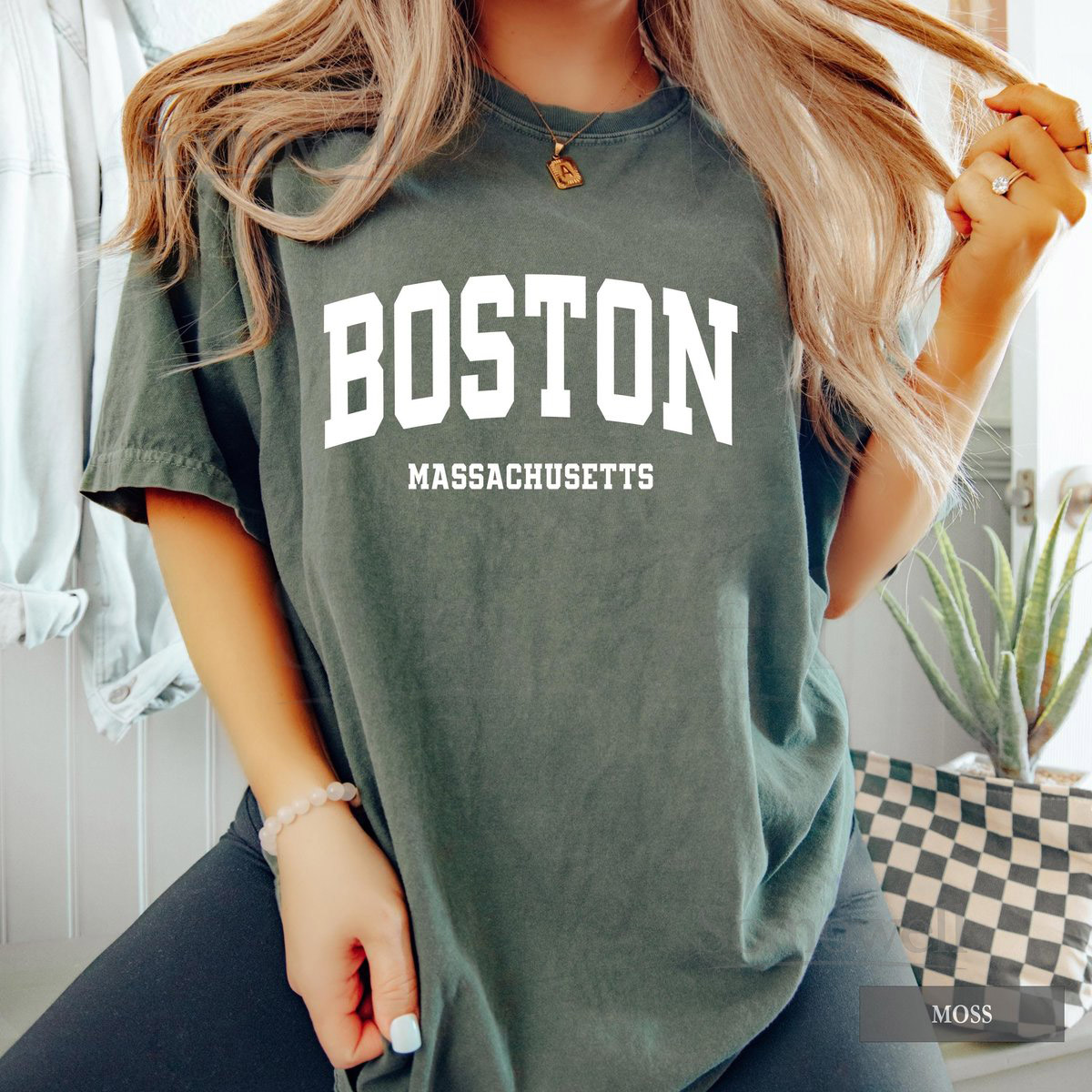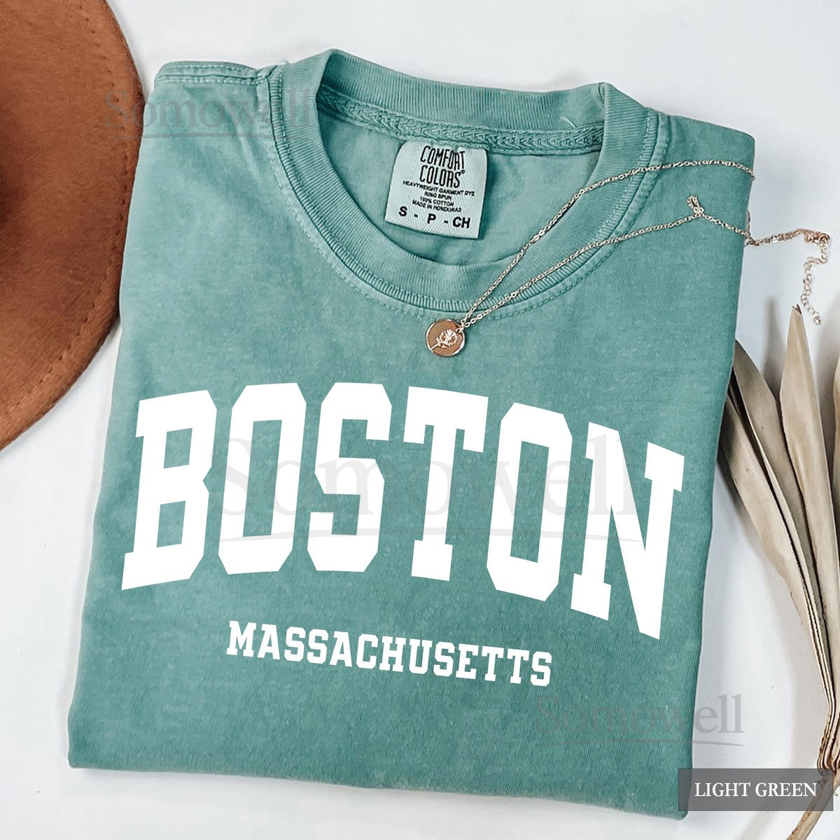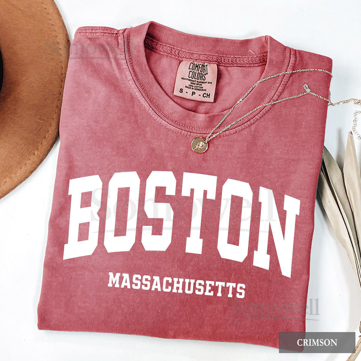 Boston Shirt Comfort Colors Varsity Font Massachusetts Graphic Tee_214