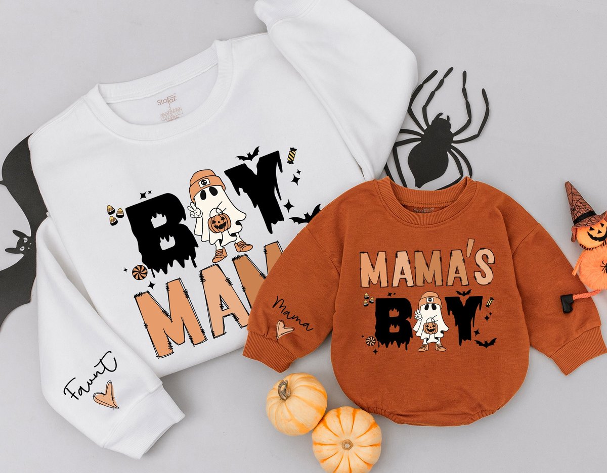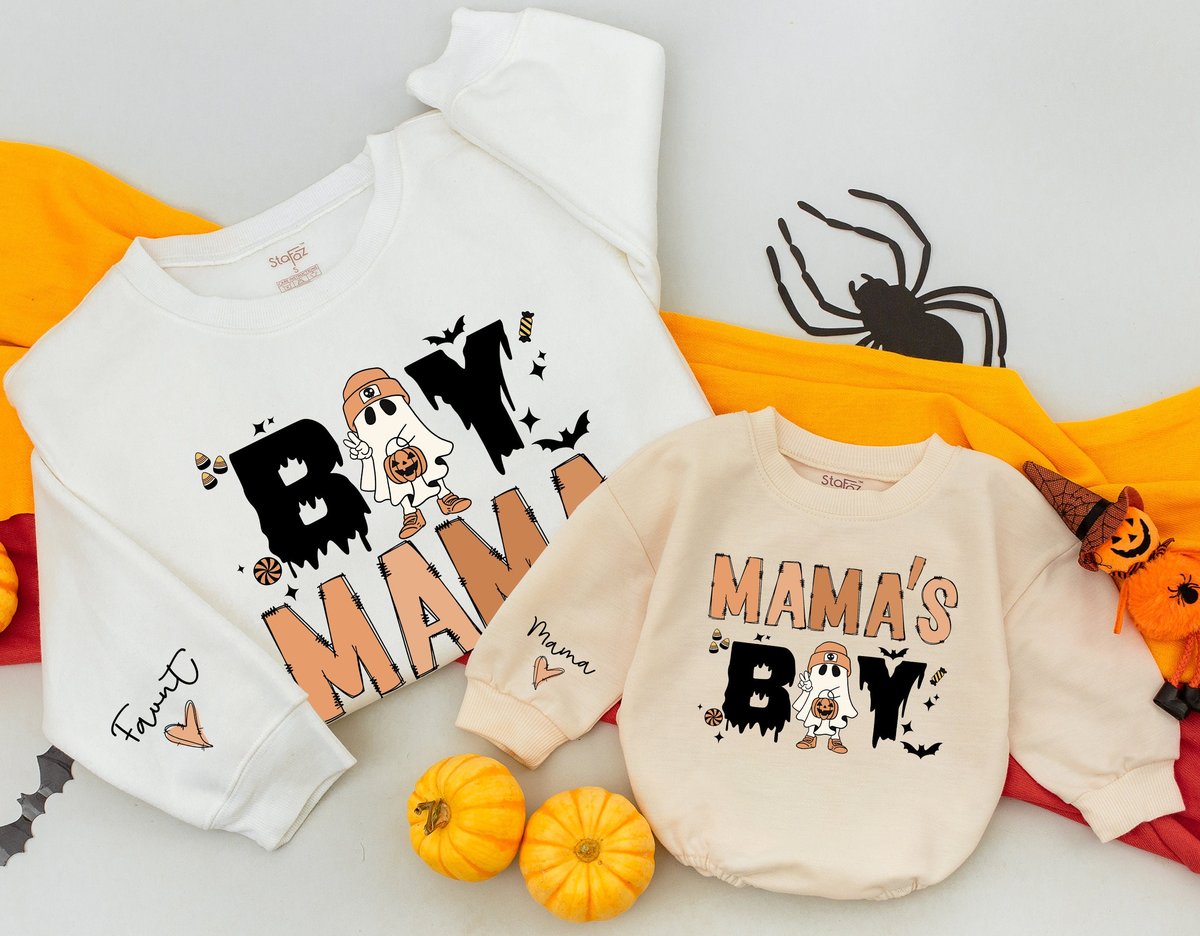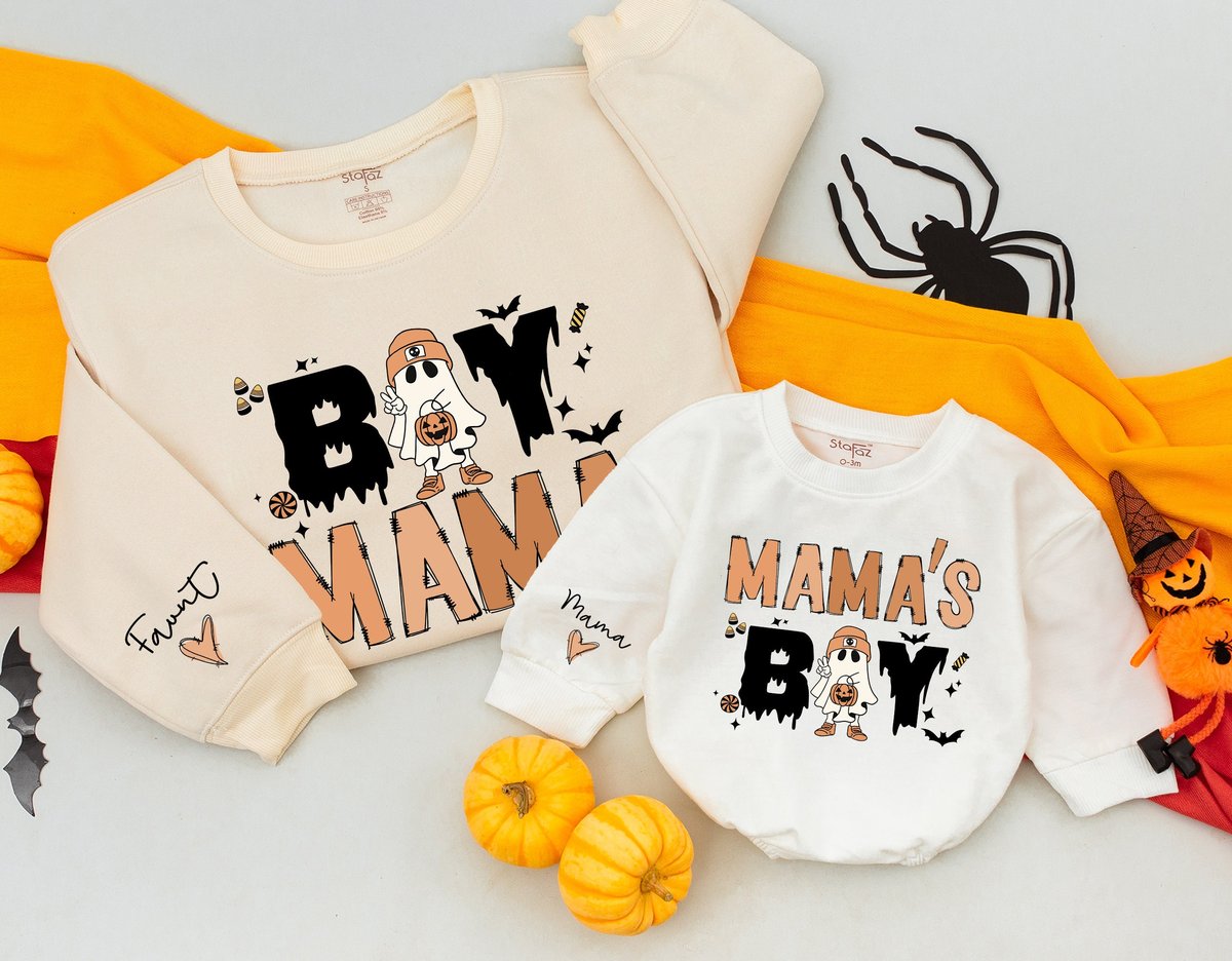 Boy Mama and Mama’s Boy Sweatshirts Mommy and Me Sweaters Matching Family Outfits Retro Halloween H 176