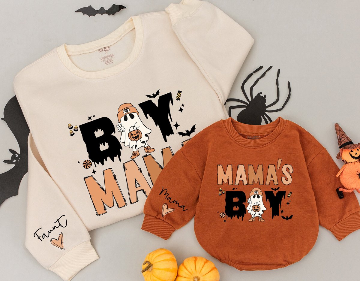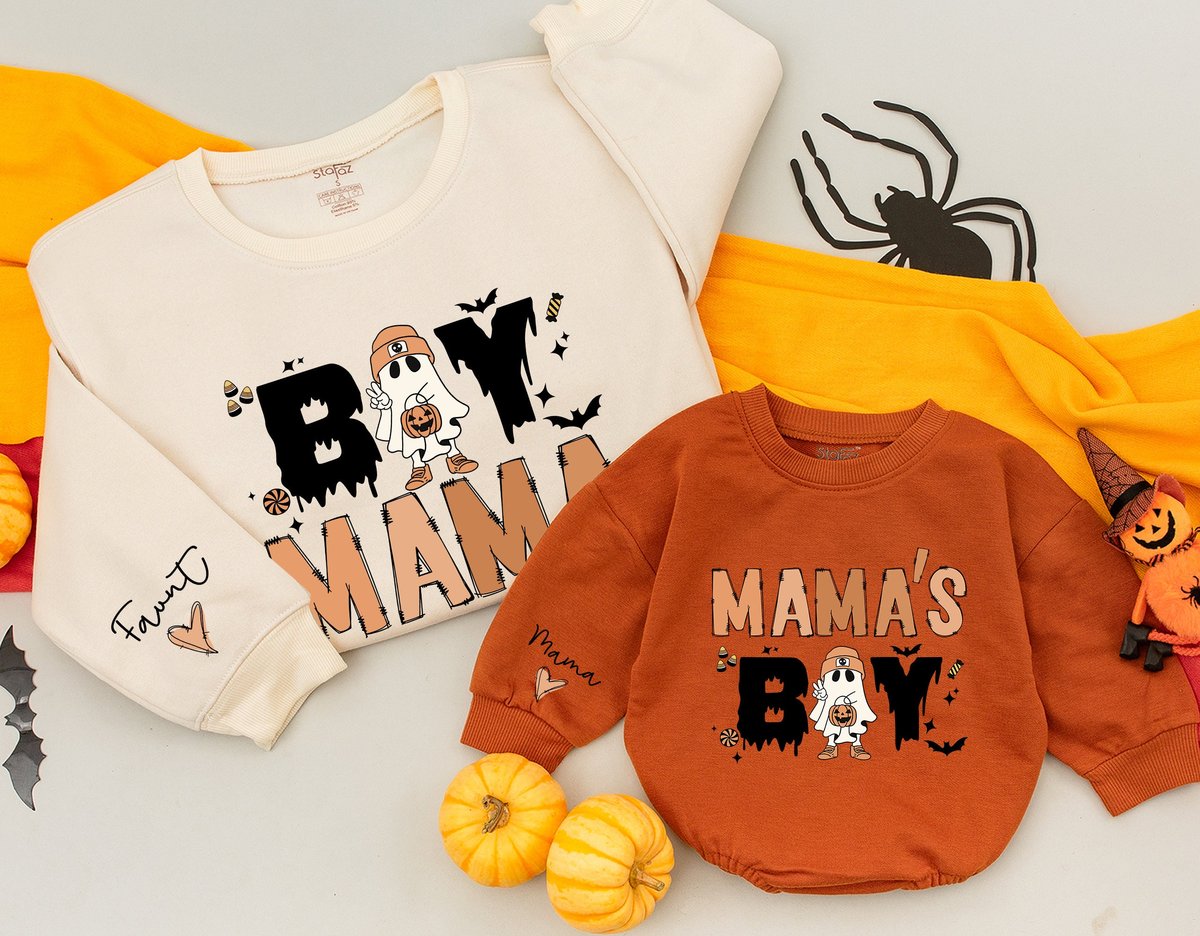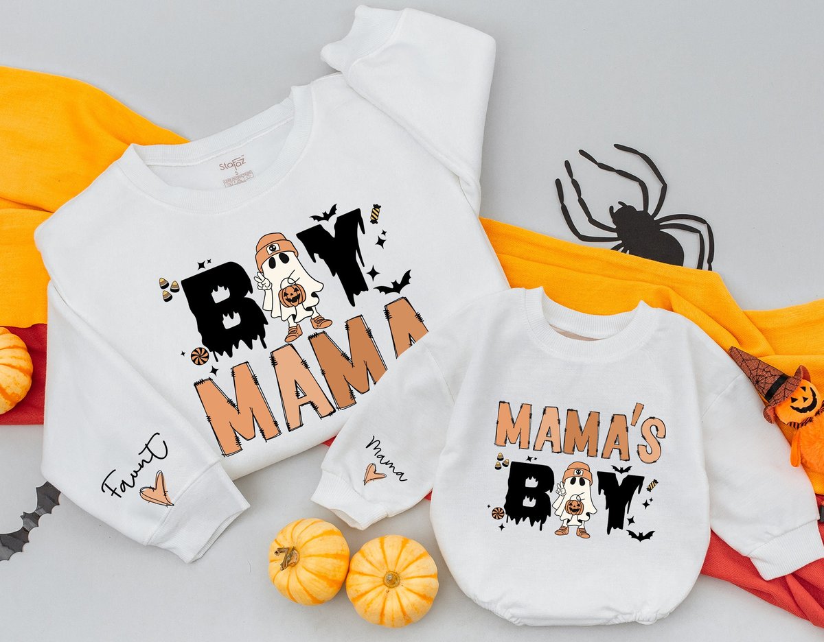 Boy Mama and Mama’s Boy Sweatshirts Mommy and Me Sweaters Matching Family Outfits Retro Halloween H 176