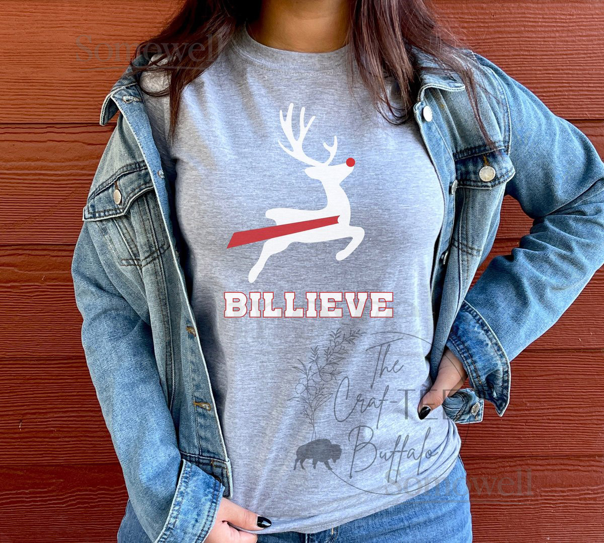 Buffalo Football Reindeer Unisex Crewneck T-shirt Buffalo Mens Womens Mafia Christmas Holiday gift_277