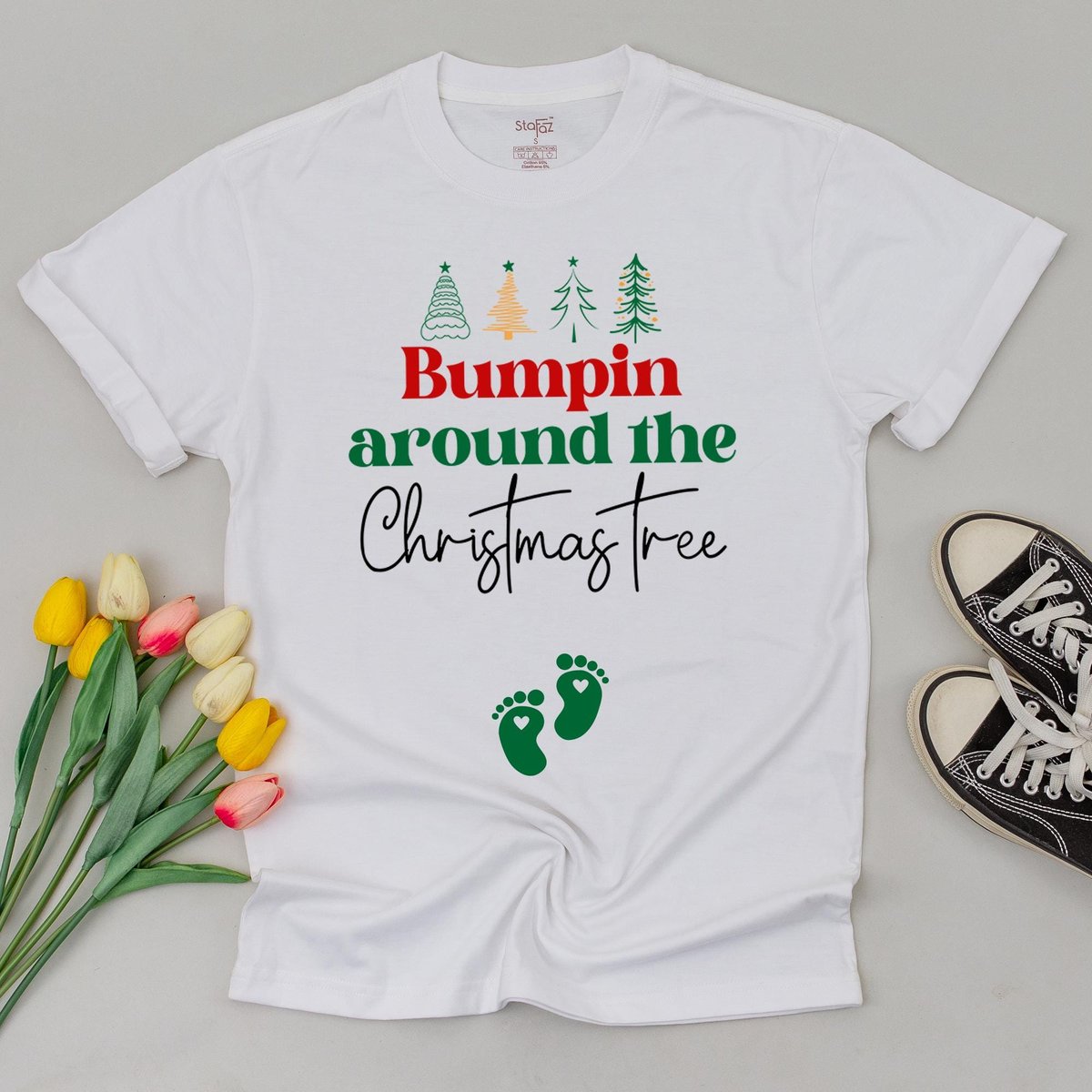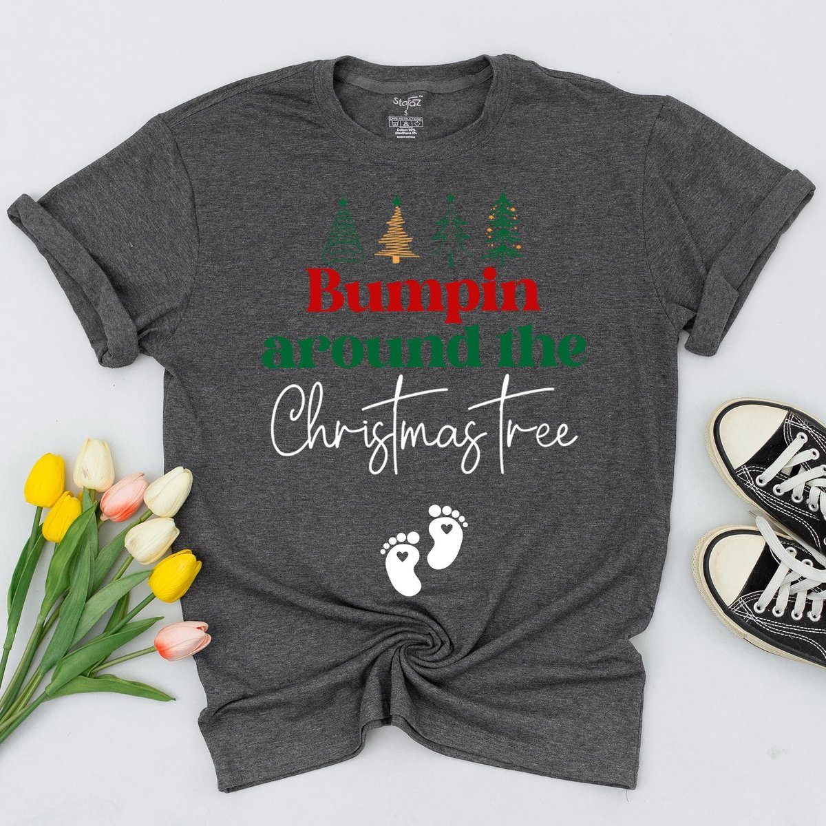 Bumpin Around the Christmas Tree Pregnancy Announcement Shirt Maternity Sweatshirt New Mom Gift Preg 181
