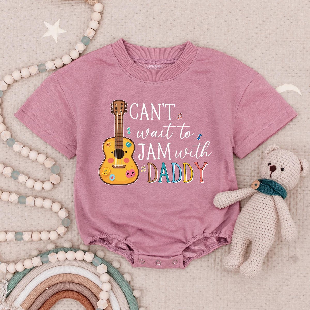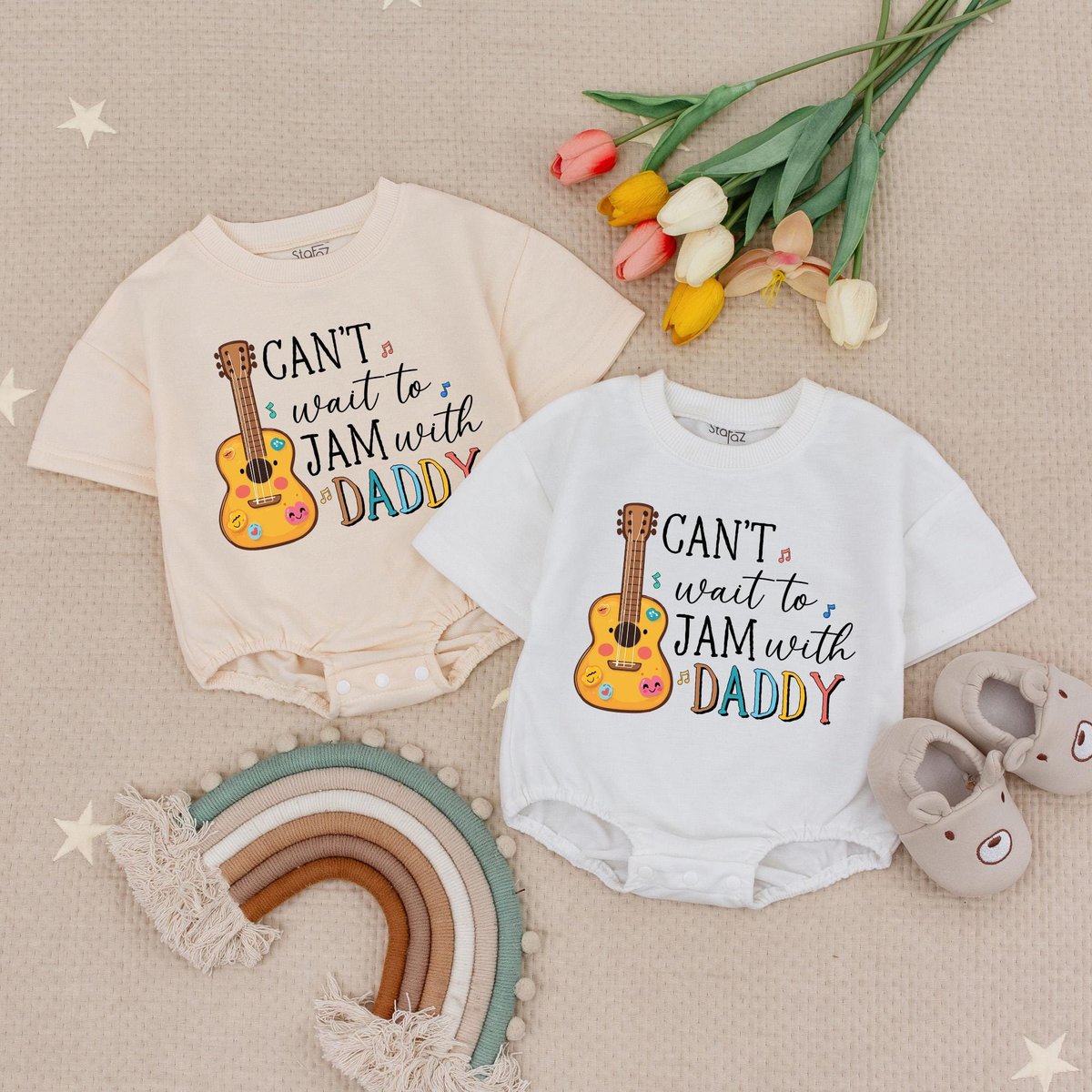 Can’t Wait To Jam With Daddy Baby Romper Daddys Music Buddy Babysuit Rock Music Baby Romper Guitar