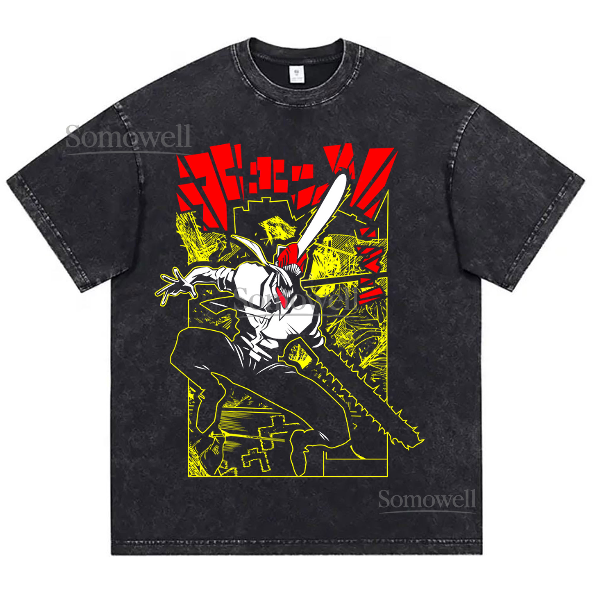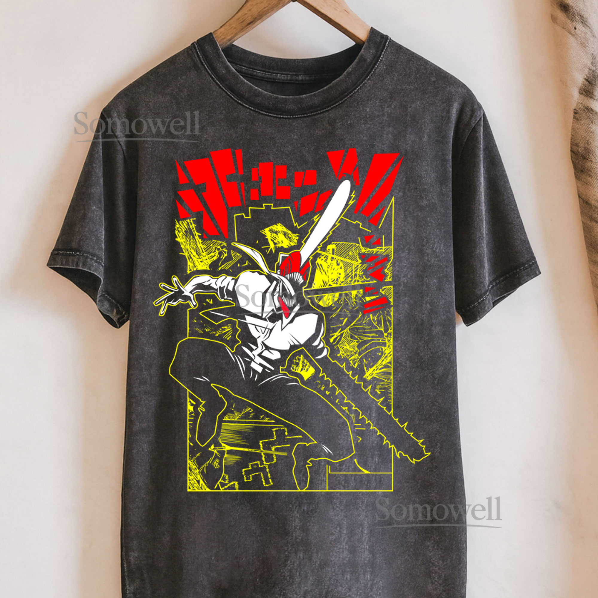Chainsaw Man Battle Neon Chainsaw Action Anime Graphic ,hoodie sweatshirt t shirt vintage Japanese Streetwear T Shirt