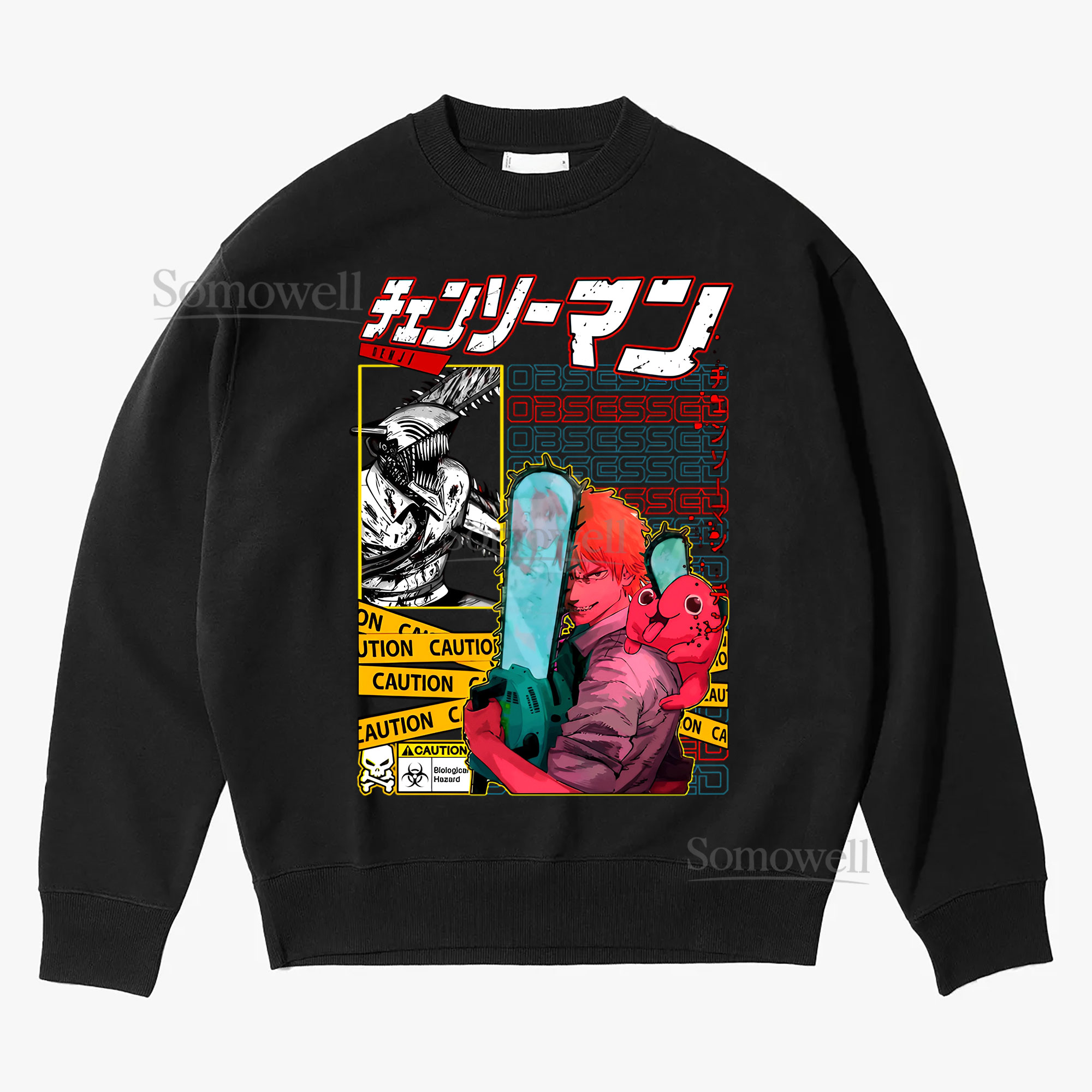 Chainsaw Man Obsession Caution Manga Art ,hoodie sweatshirt vintage