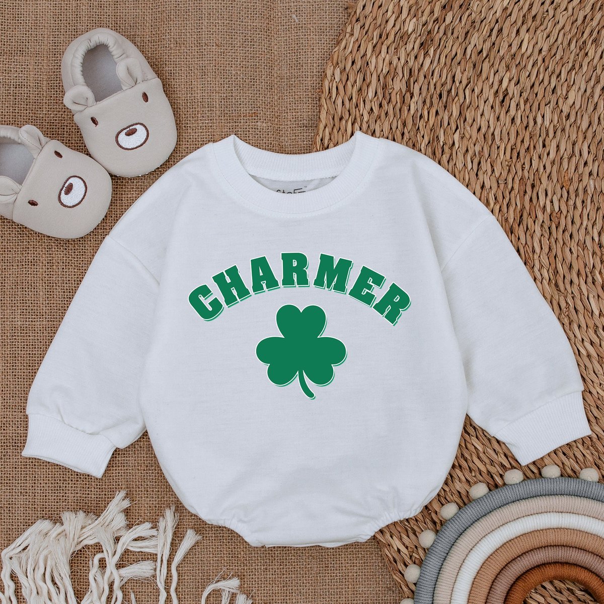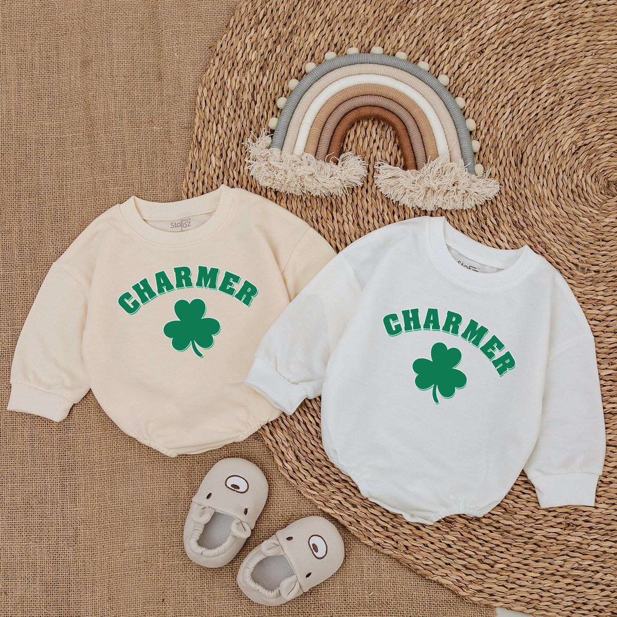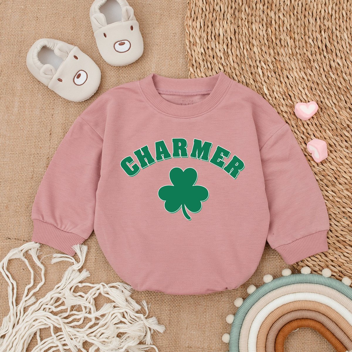 Charmer Baby Romper St Patrick’s Day Bodysuit Natural Irish Baby Outfit Light Mauve Baby Romp