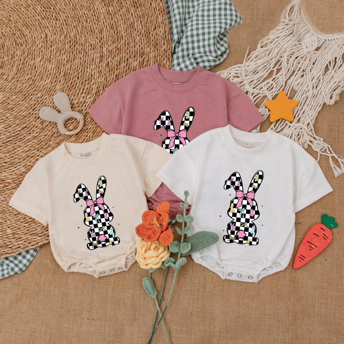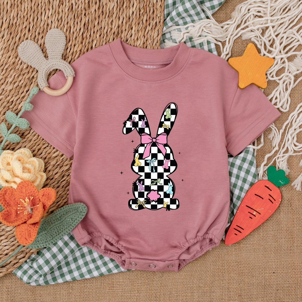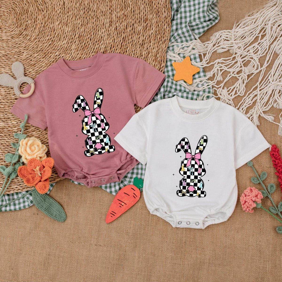 Checkered Easter Bunny Bow Baby Romper Retro Easter Bunny Baby Bodysuit Easter Day Baby Gift My Firs 186