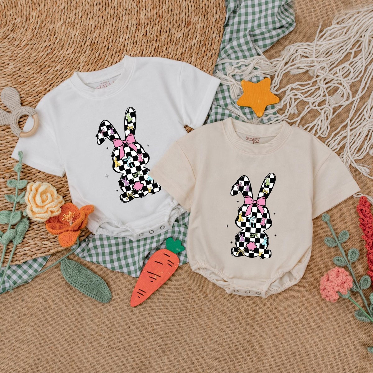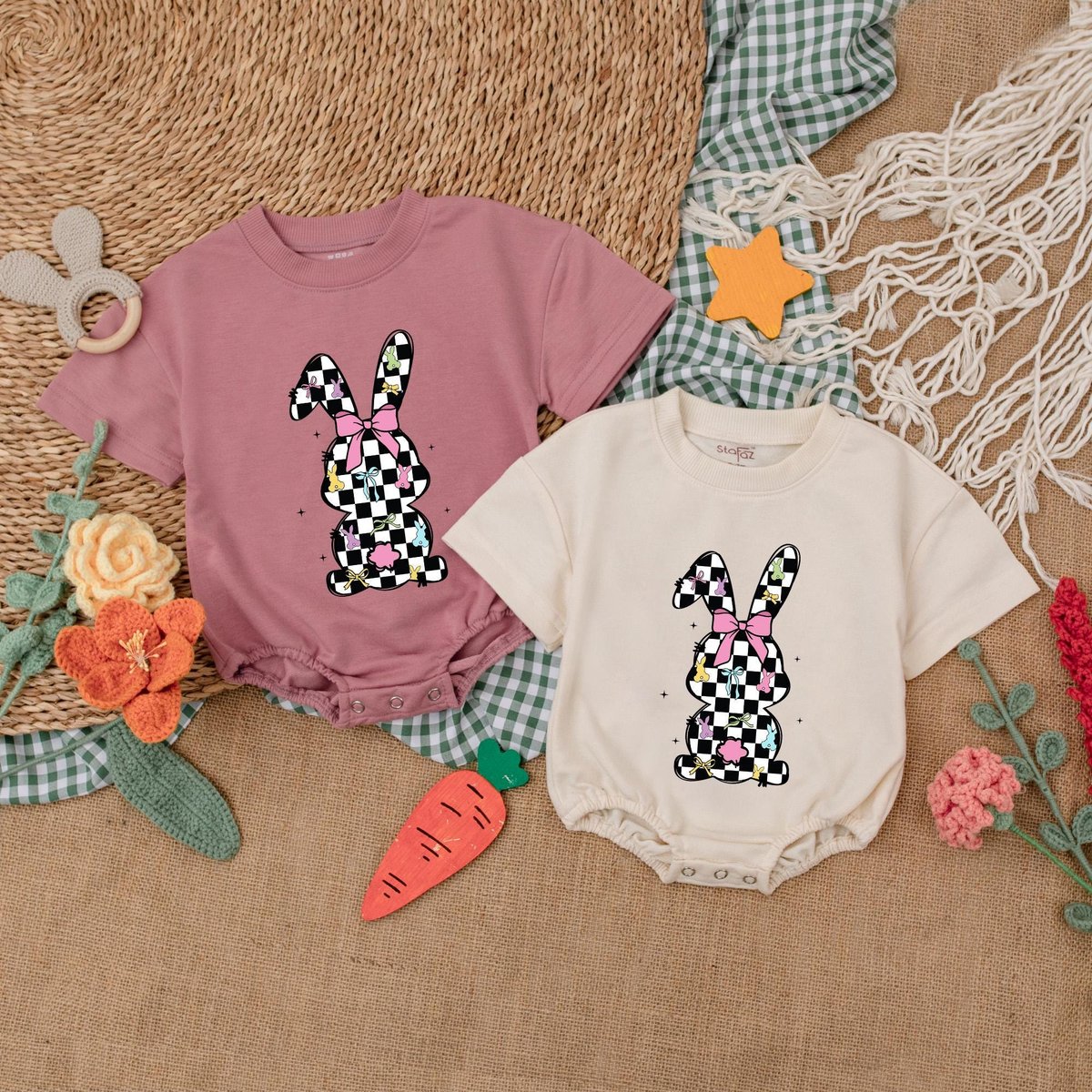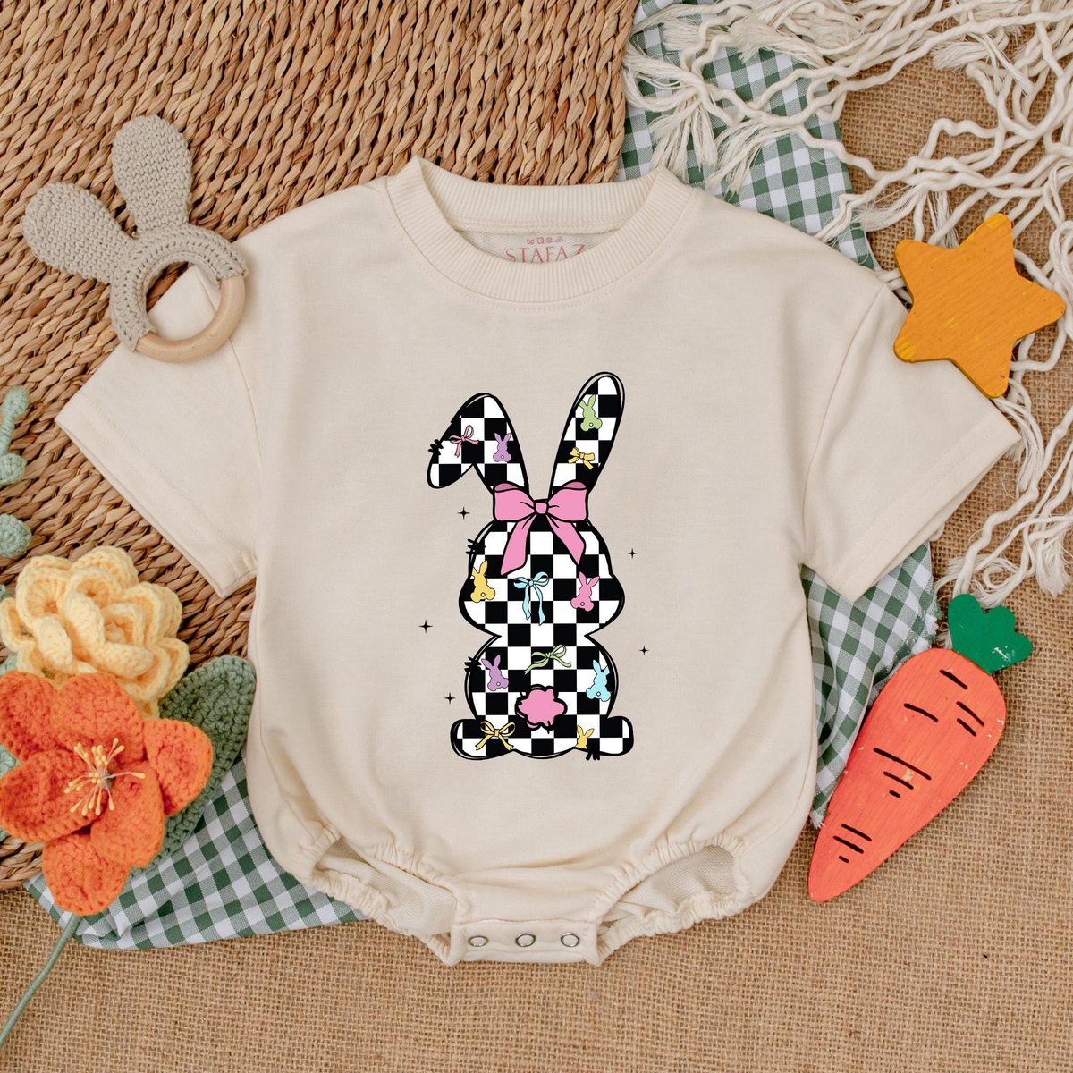 Checkered Easter Bunny Bow Baby Romper Retro Easter Bunny Baby Bodysuit Easter Day Baby Gift My Firs 186