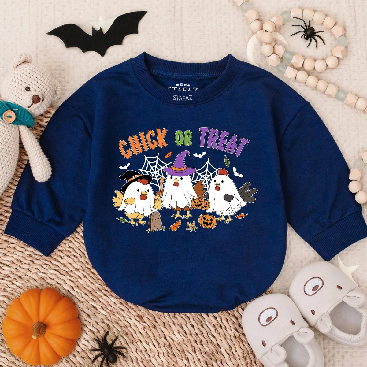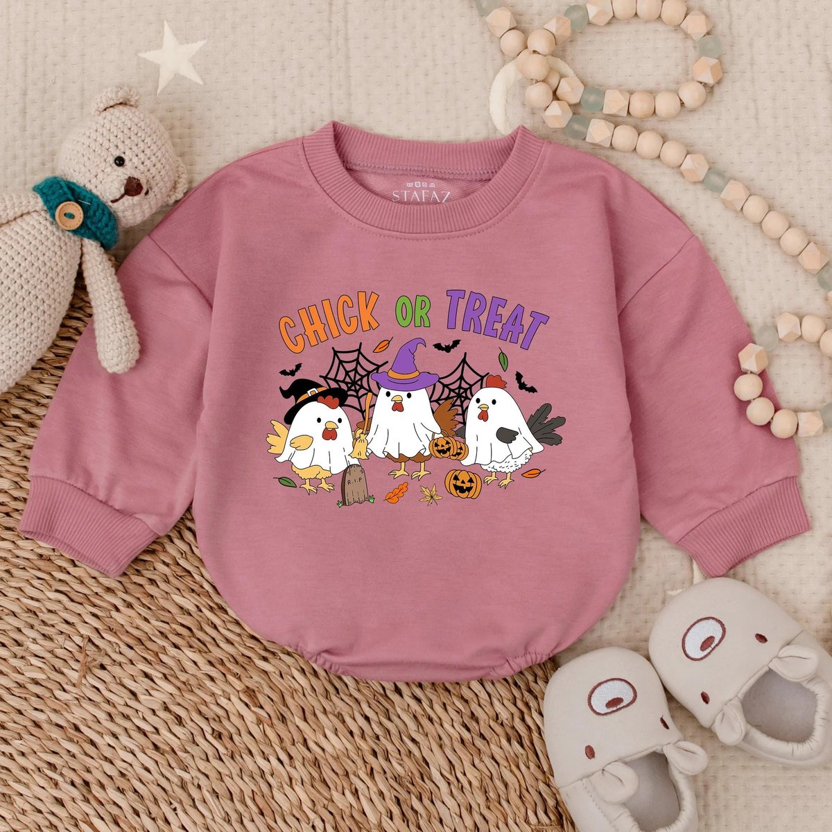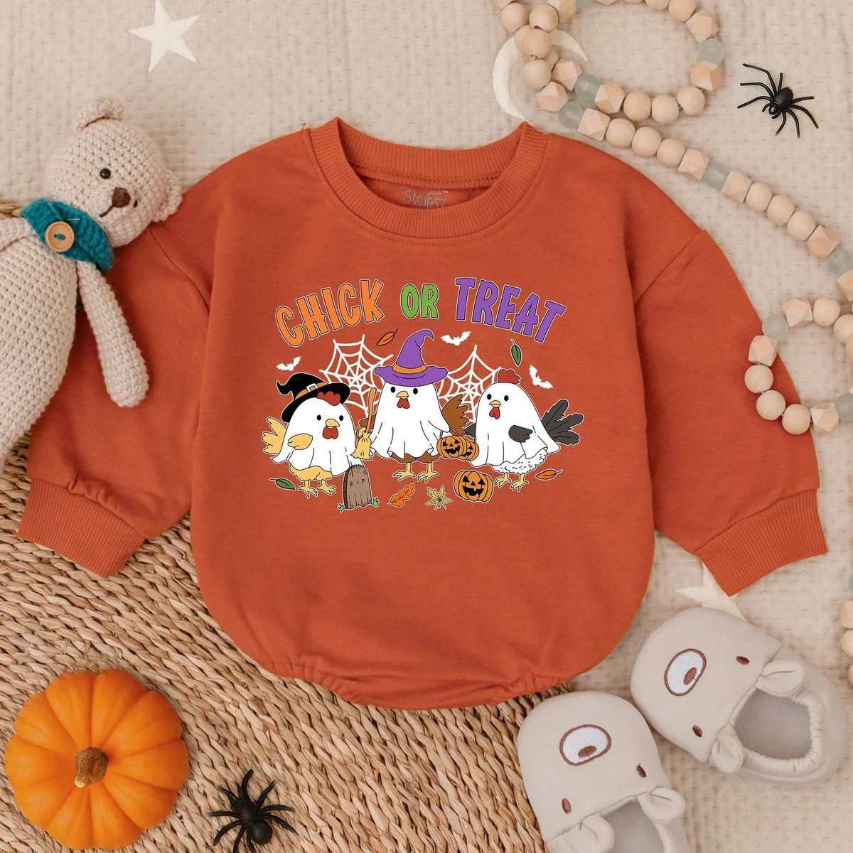 Chick or Treat Halloween Baby Romper Spooky Chicken Oversized Sweatshirt Infant Horror Costume Cut