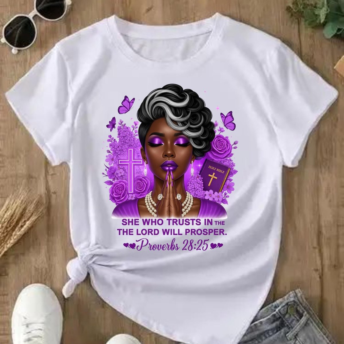 Christian Black Woman PNG Faith Quote Proverbs 28 25 Praying Bible Verses Purple Digital Download Su 433