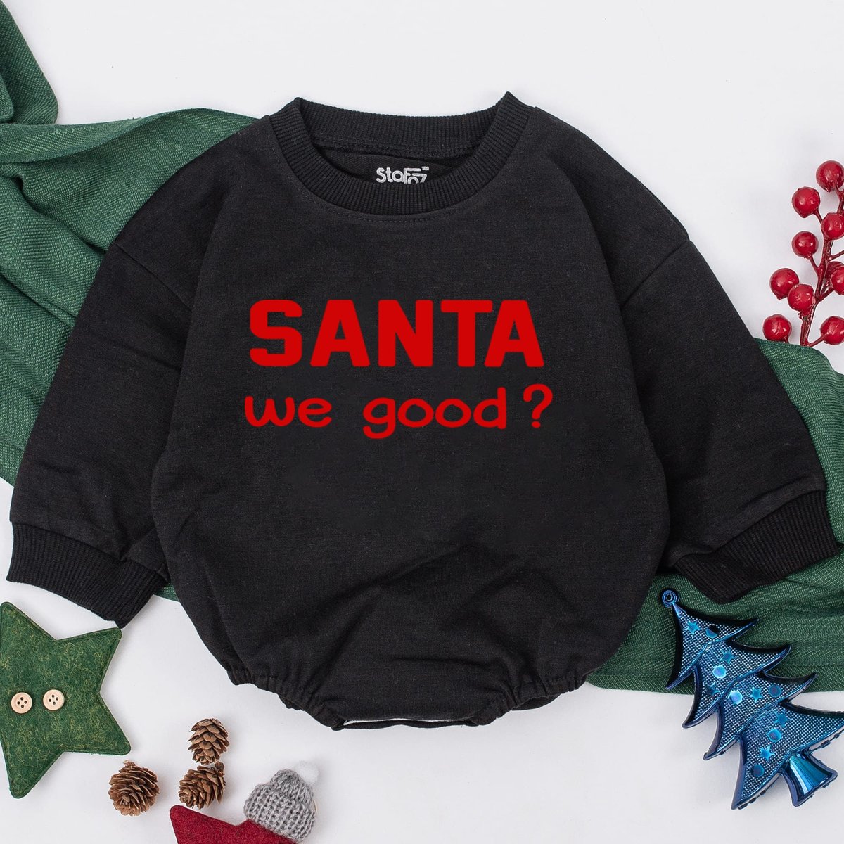 Christmas baby Outfit Santa We Good Baby Romper soft cozy warm Boy Christmas baby girl Retro Santa C 160