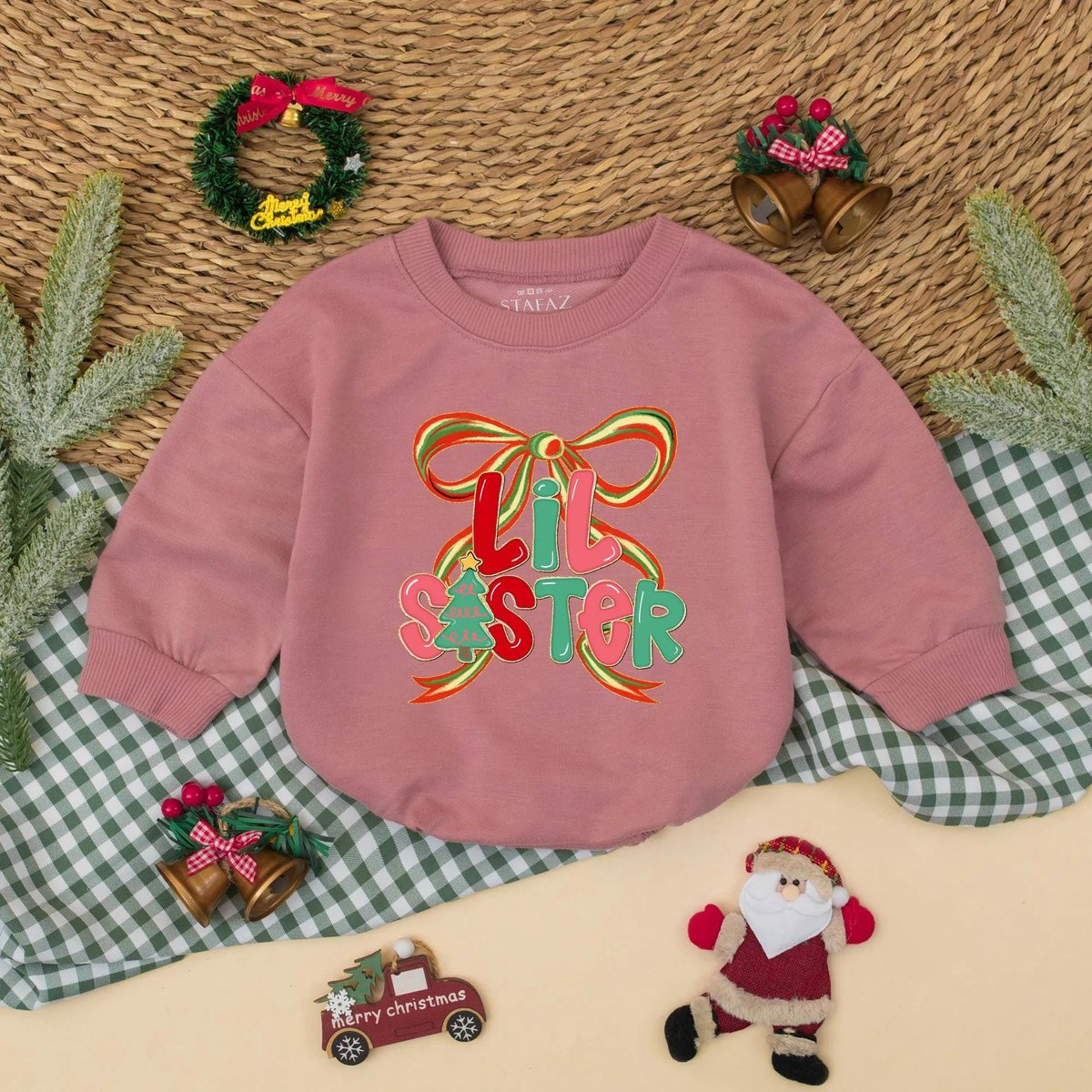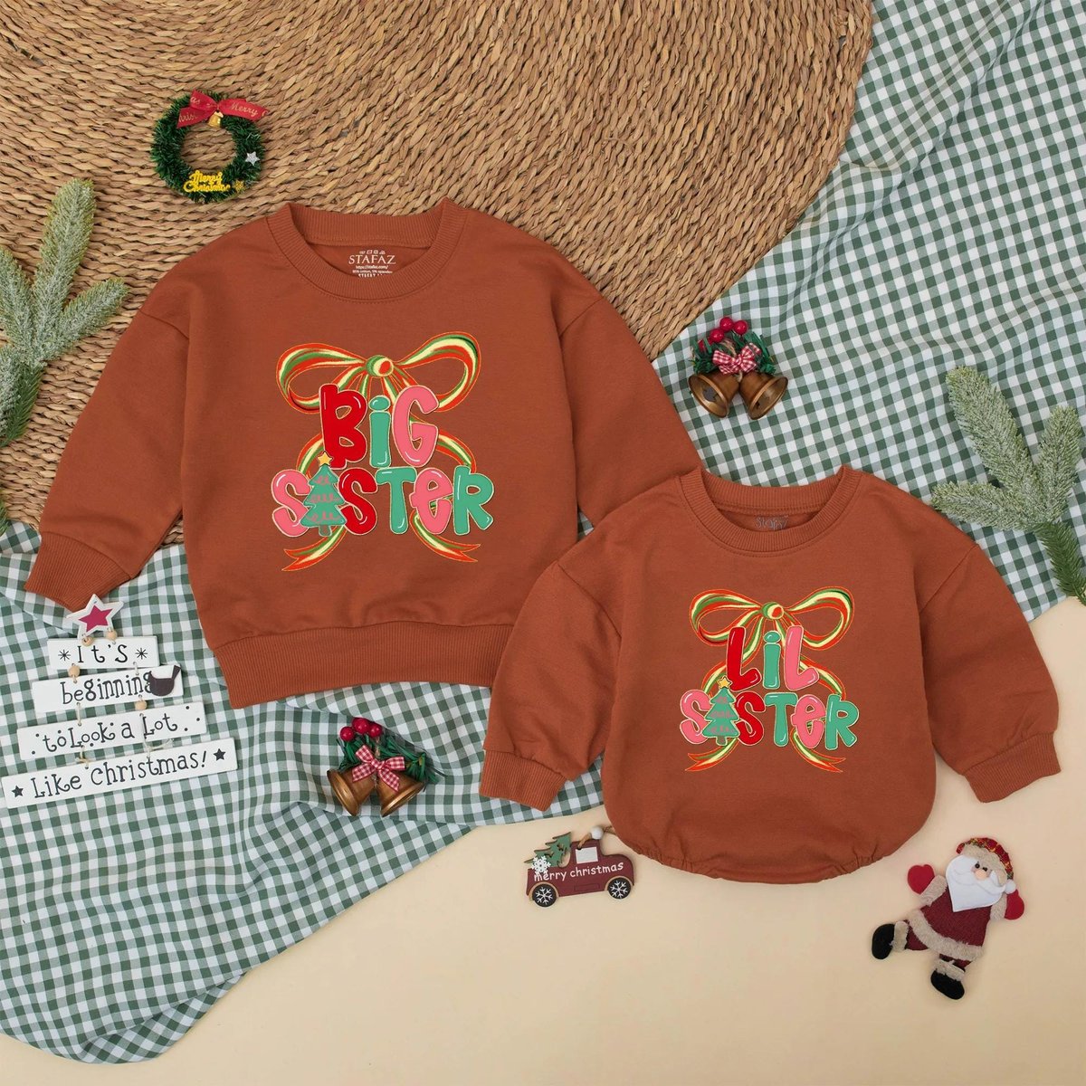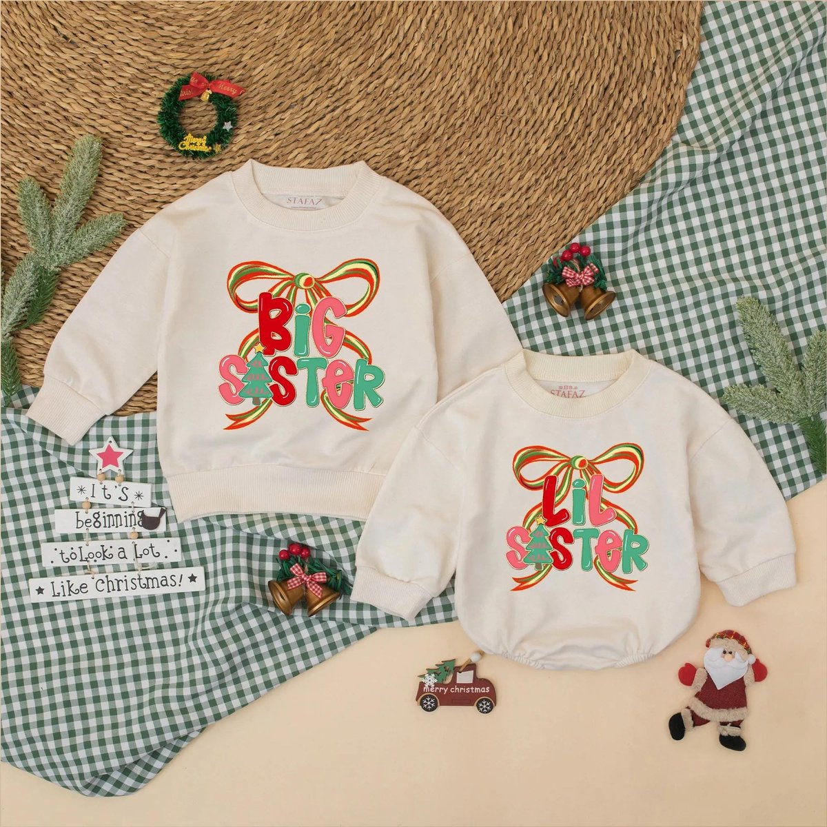 Christmas Big Sister Lil Sister Matching Sweatshirts Christmas Bow Sister Sibling Outfit Big Sister 436