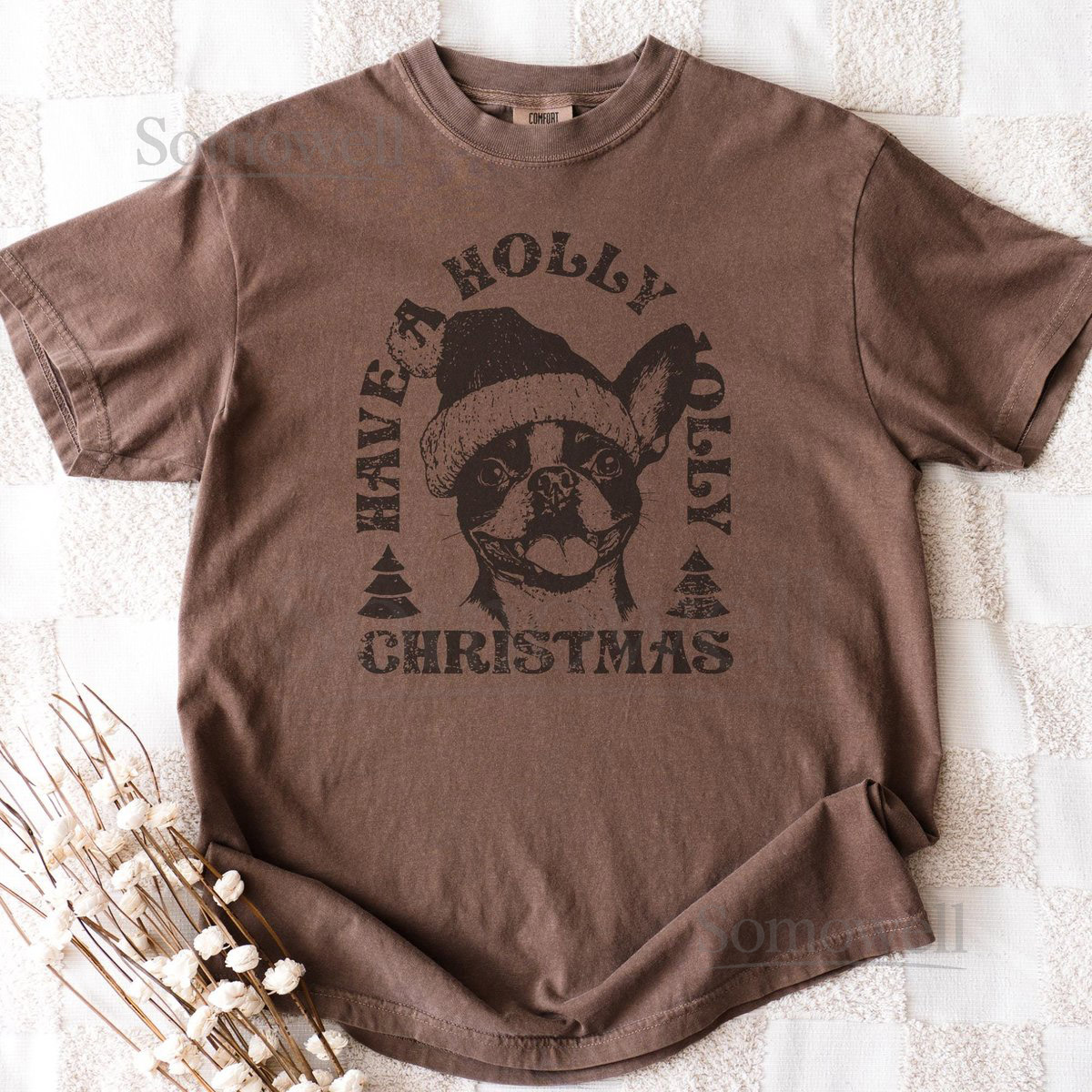 Christmas Boston Terrier Face T-Shirt Xmas Boston Moms or Dads Gift Holiday Tee – Vintage Santa Dog Design_252