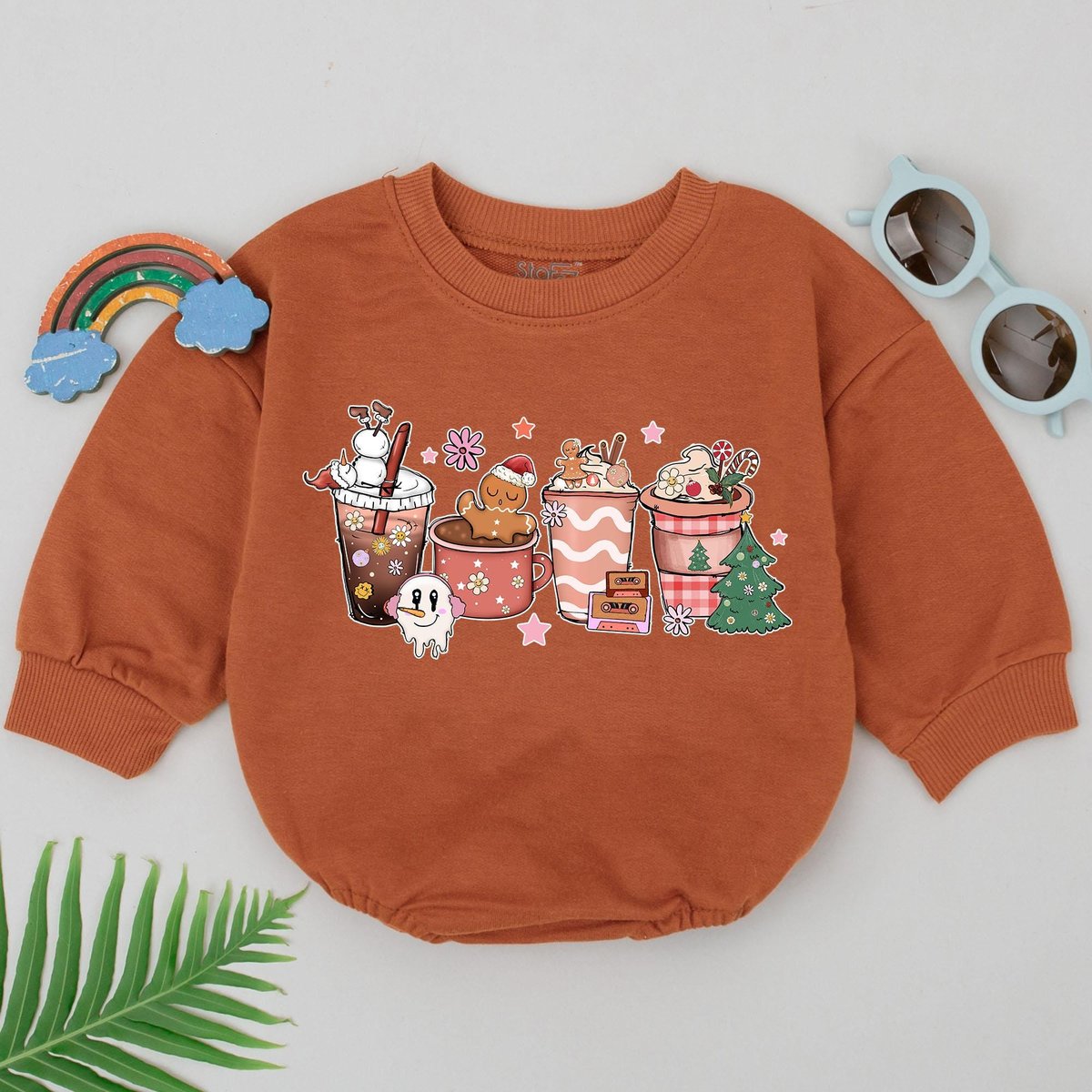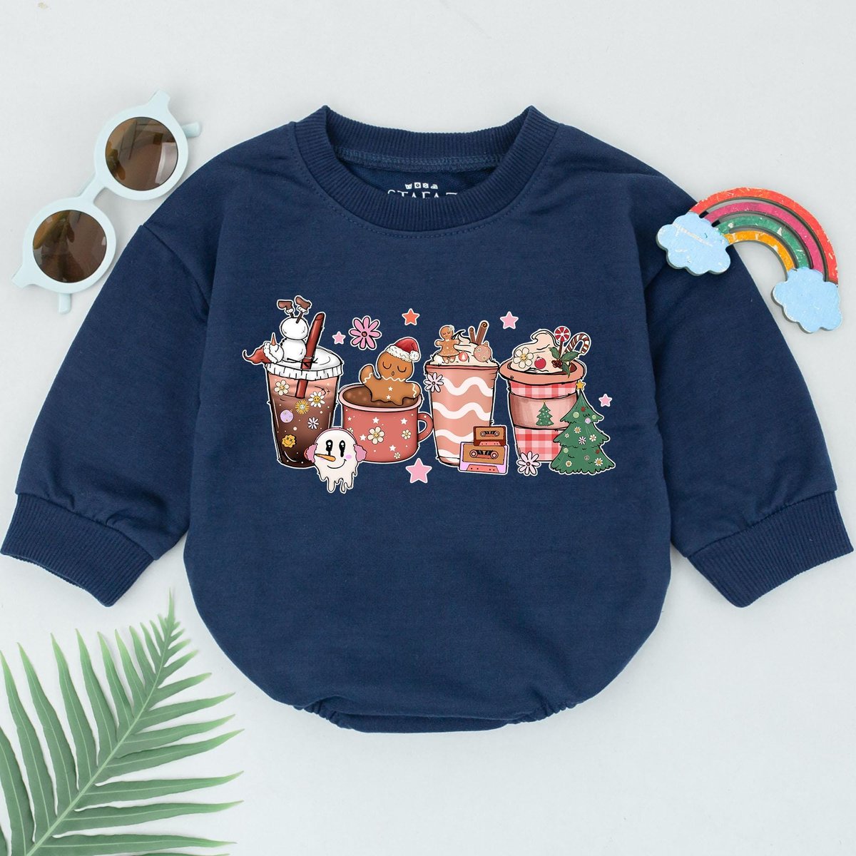Christmas Coffee Cups Romper 1st Christmas Romper Baby Shower Gift Christmas Drink Outfits Newborn f