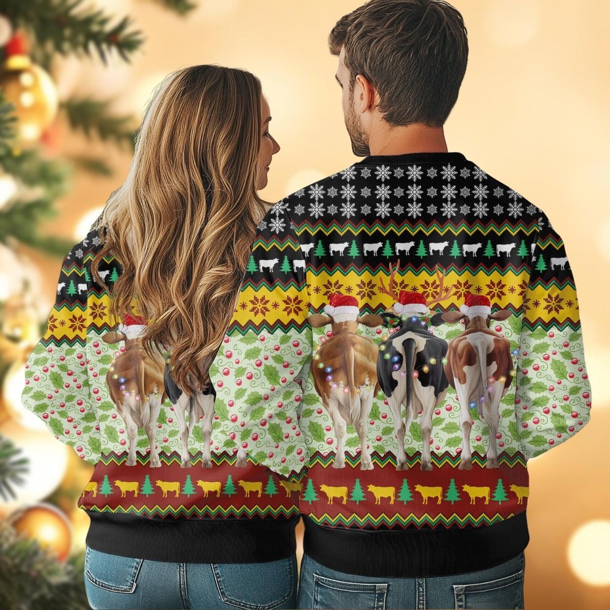 Be the first to review “Christmas Cow Lights Ugly Christmas Sweater Farm Animal Holiday Pullover Gif”