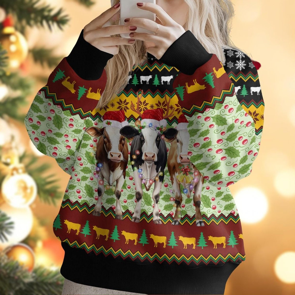 Christmas Cow Lights Ugly Christmas Sweater Farm Animal Holiday Pullover Gif