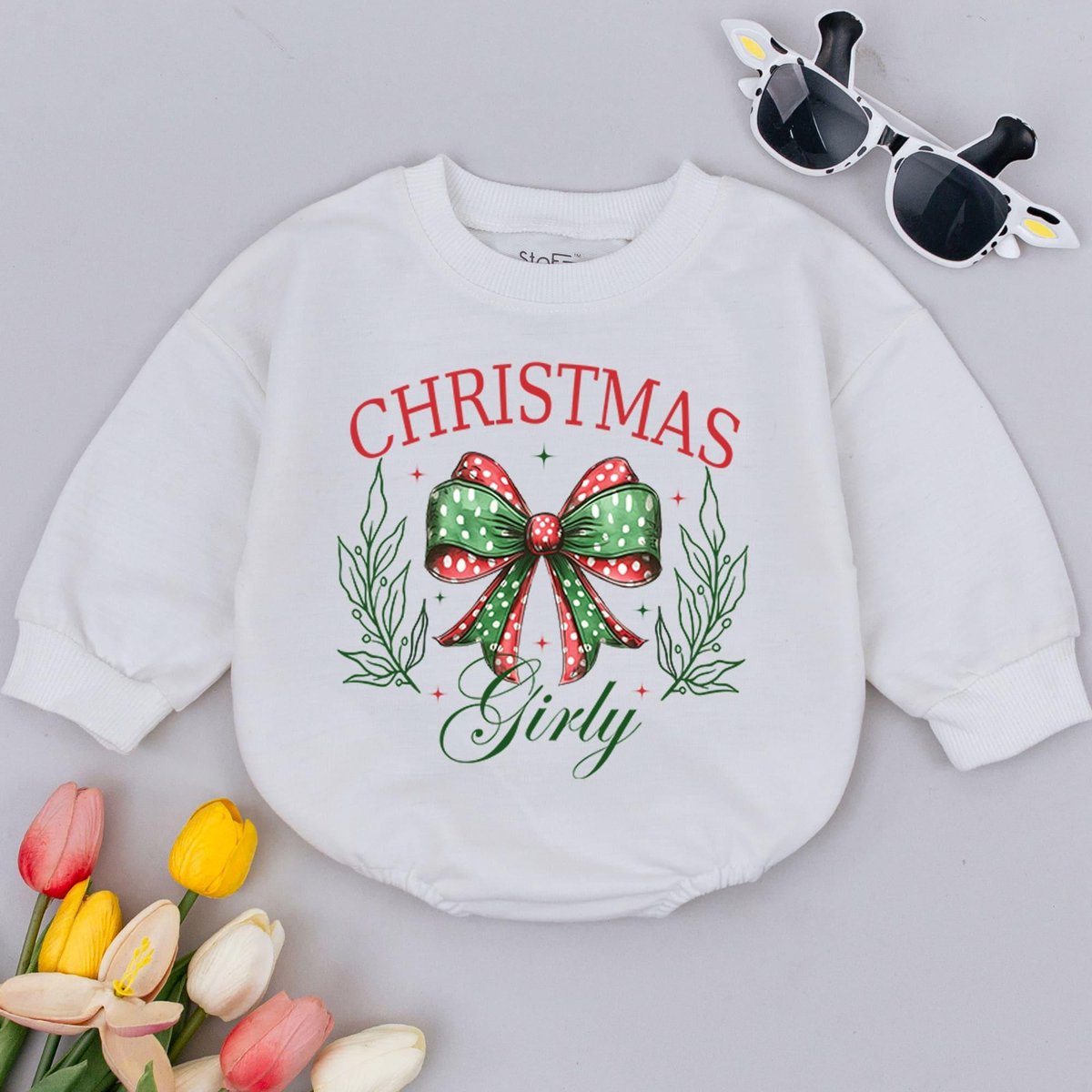 Christmas Girly Baby Romper Baby First Christmas Baby Girl Holiday Outfit Retro Christmas Baby Showe 177