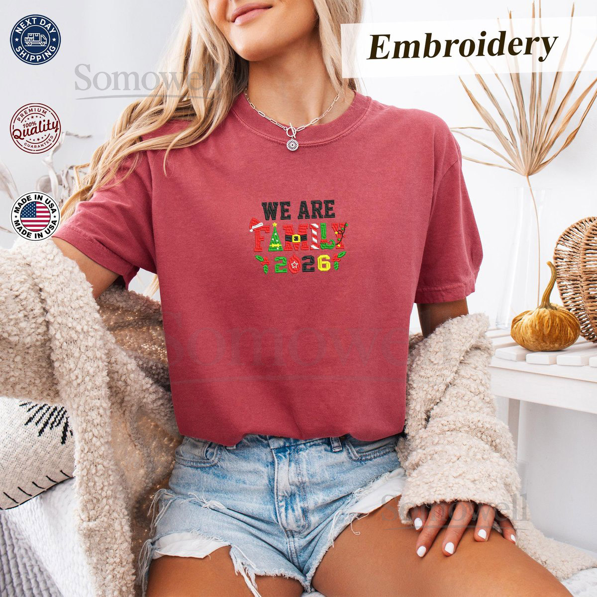 Christmas We Are Family Comfort Colors Tee Embroidered Shirt Gift Christmas Shirt Christmas Gift Family Trip Shirt Embroidered Gift_15