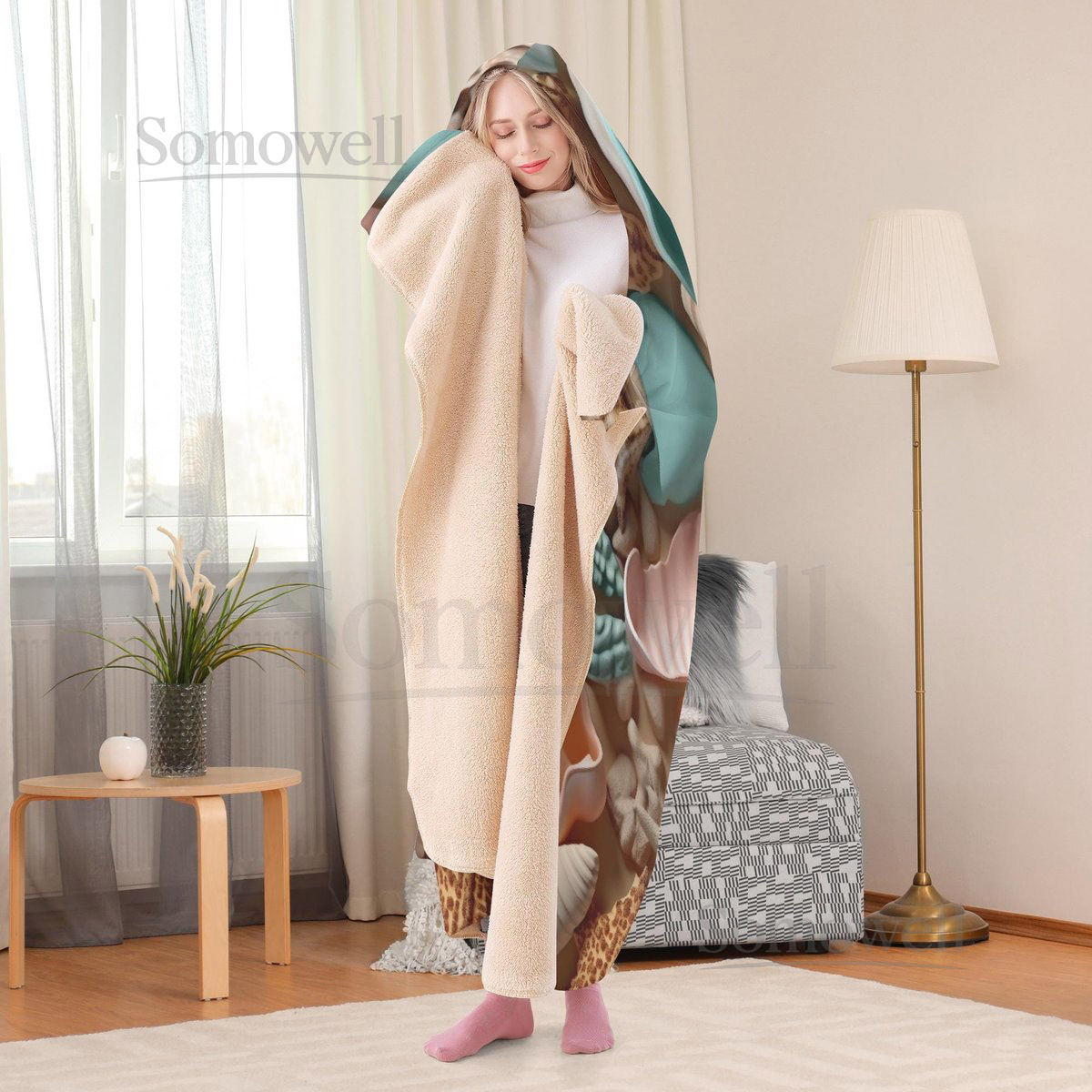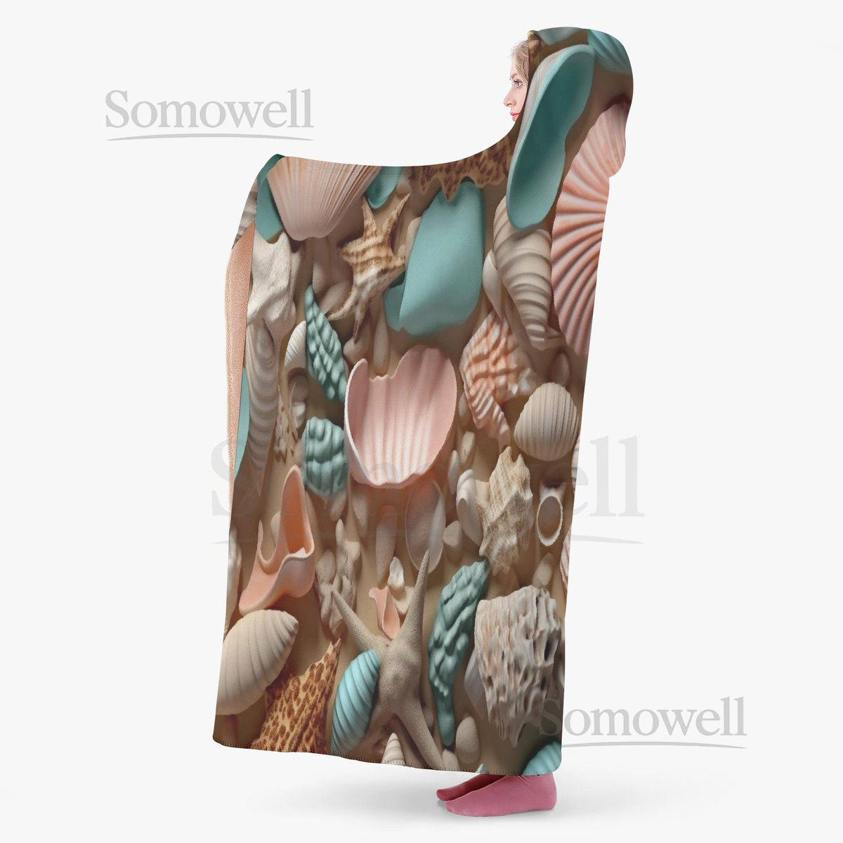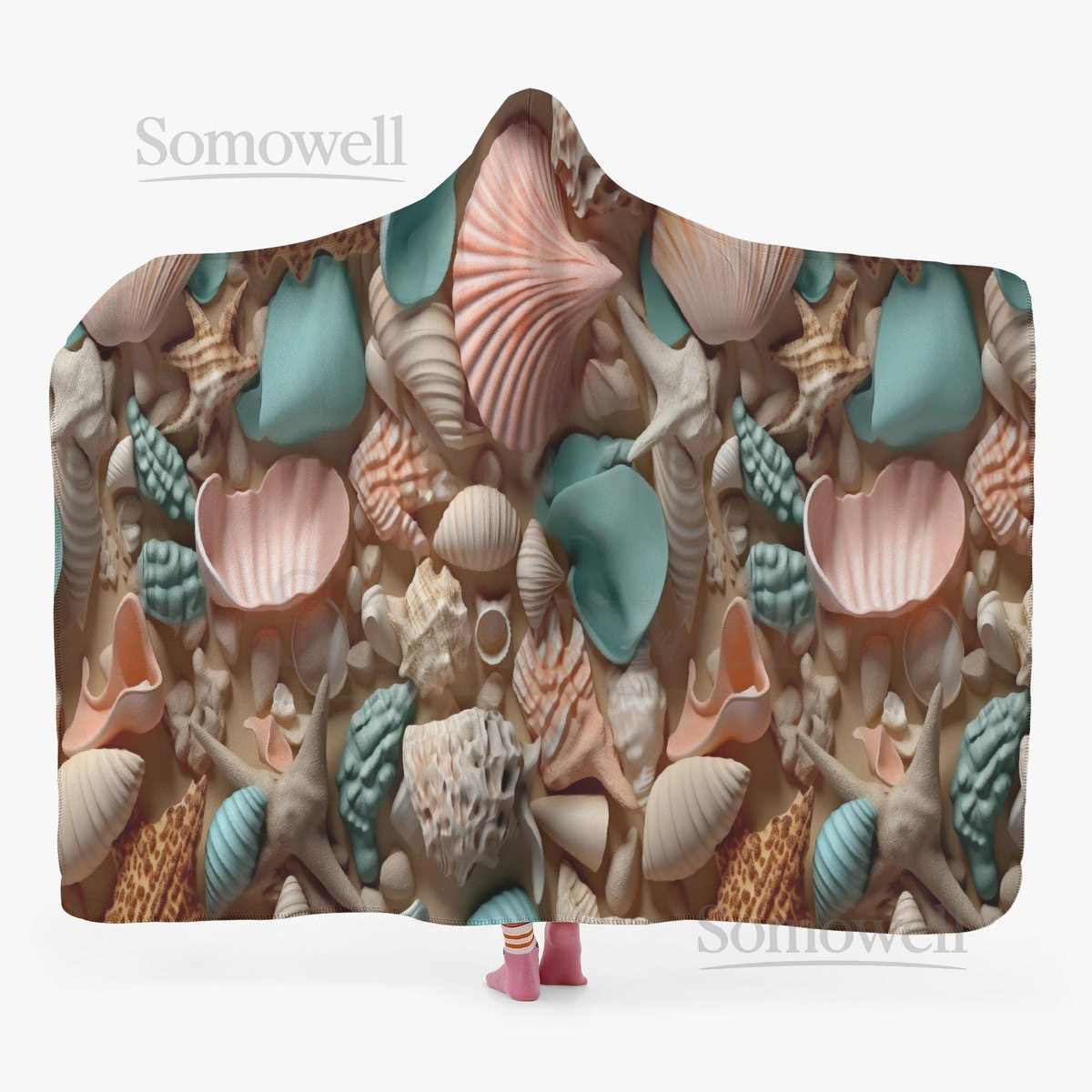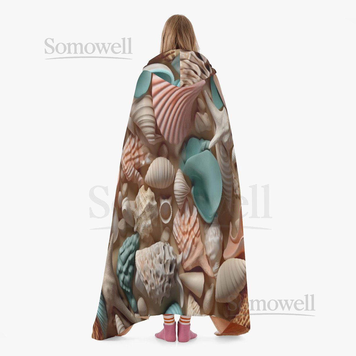 Colorful Seashells Dual-Sided Stitched Hoodie Blanket Casual Oversized Wearable Throw in High-Definition Print_18