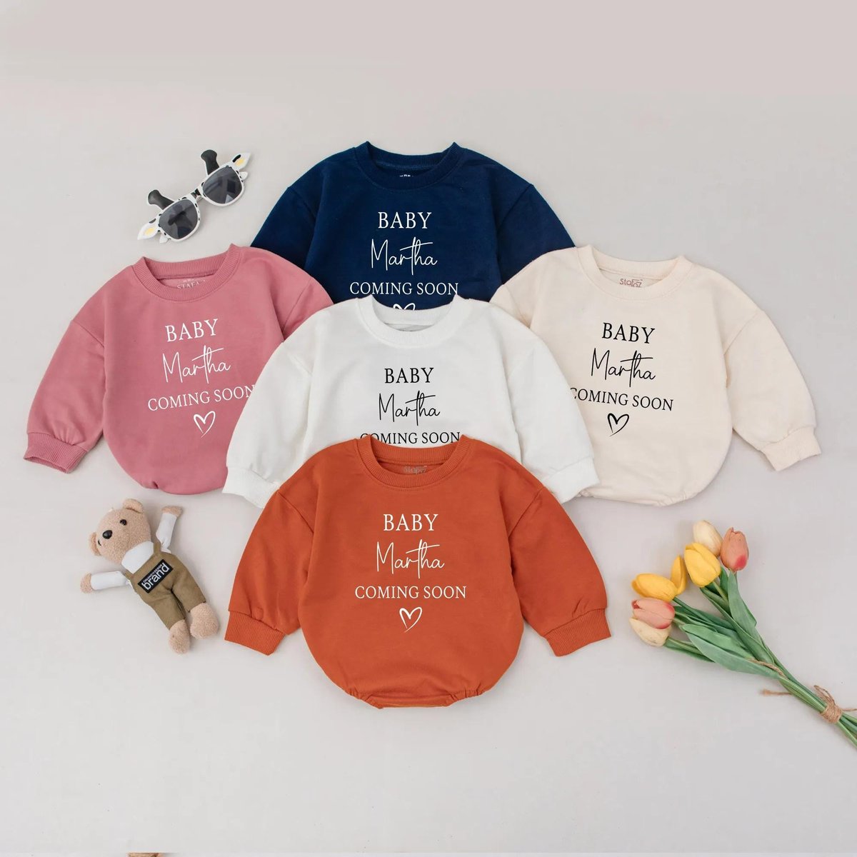 Coming Soon Baby Romper Personalized Baby Name Outfit Pregnancy Announcement Clothes Baby Shower Gif 431