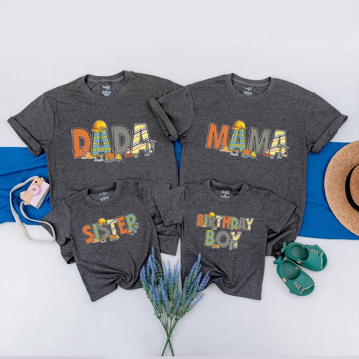 Construction Birthday Matching Family Shirts Birthday Boy Romper Dad Mom Brother Shirt Builder Theme 190