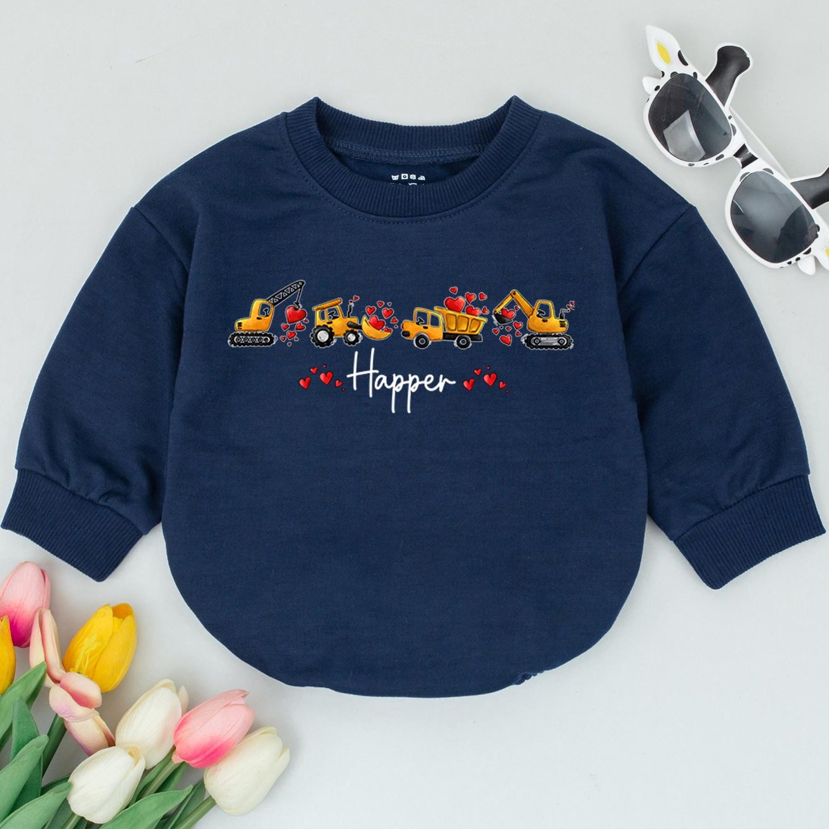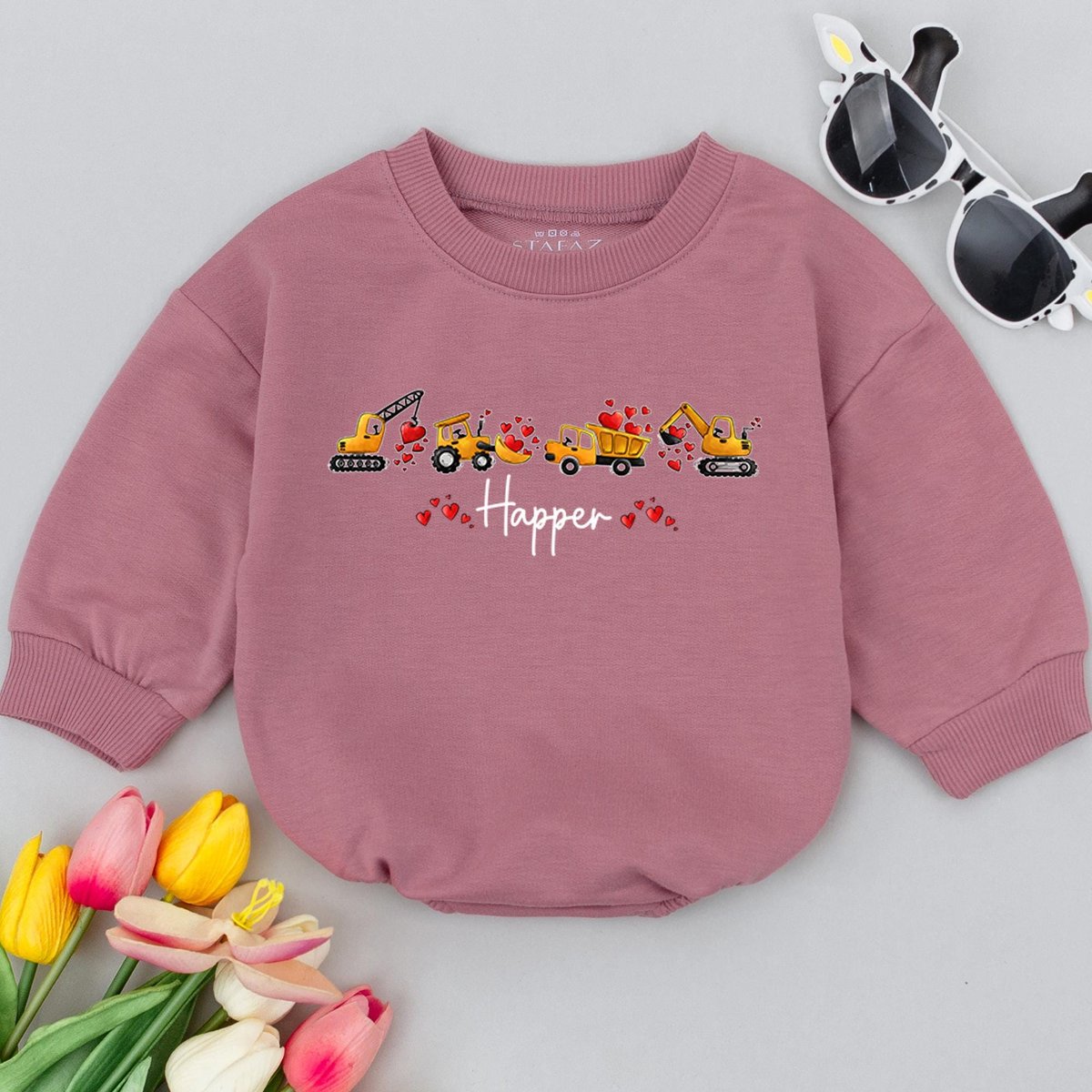 Construction Valentine’s Day Baby Romper Baby Boy Valentine Outfit Personalized Baby Clothes First 185