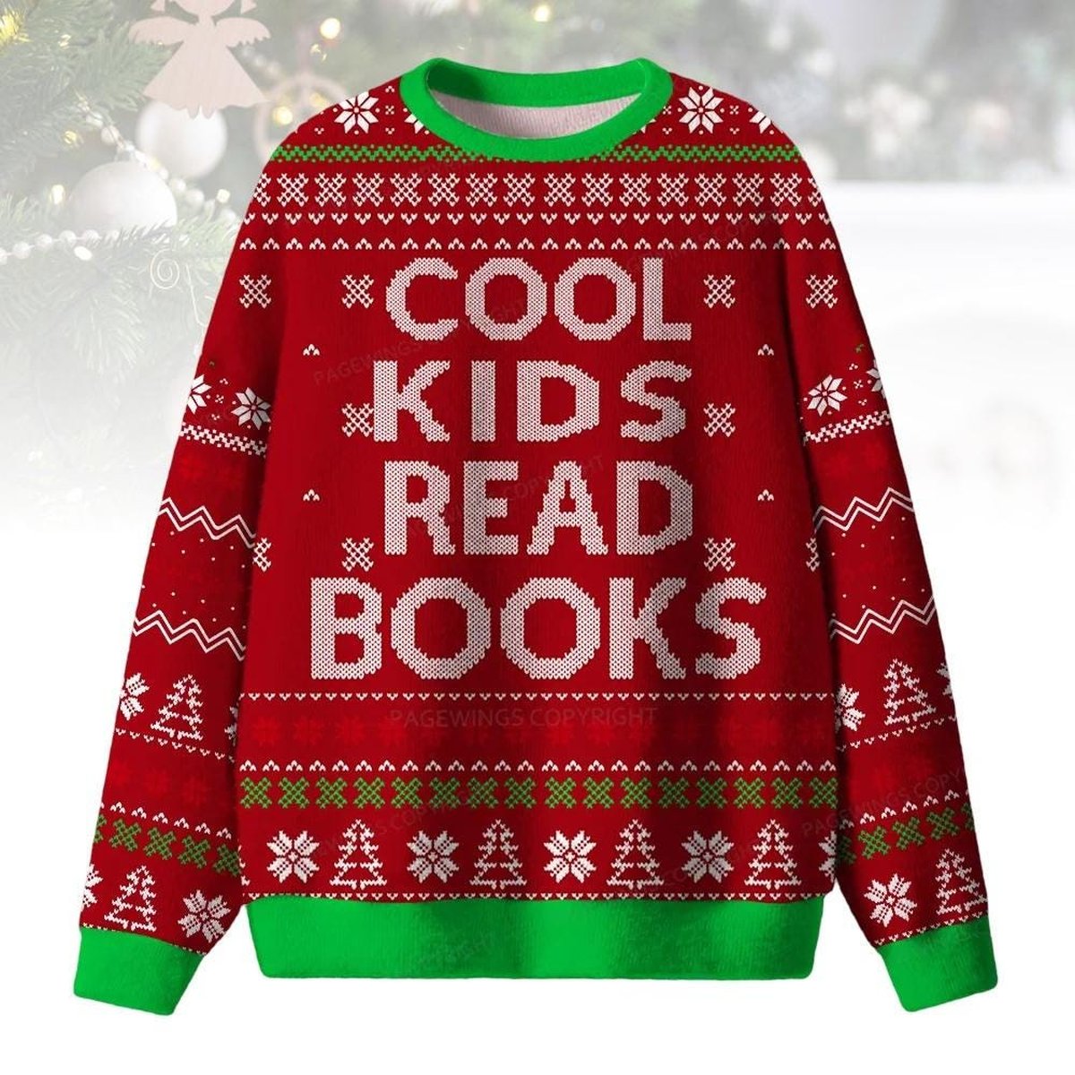 Cool Kids Read Books Ugly Christmas Sweater Funny Reading Lover Holiday Knit Pullover Gift