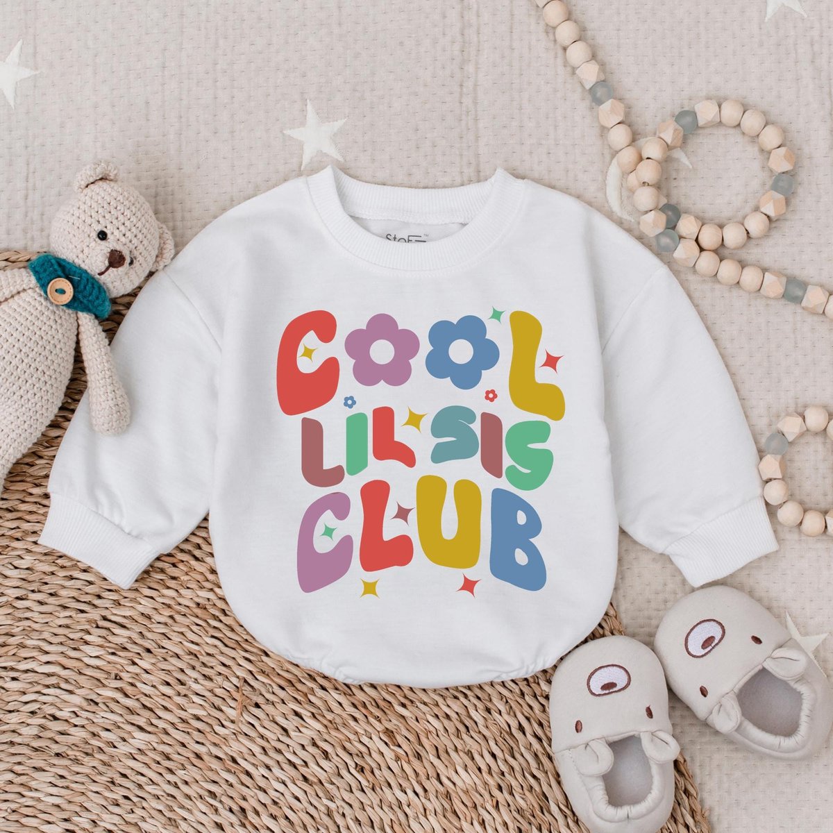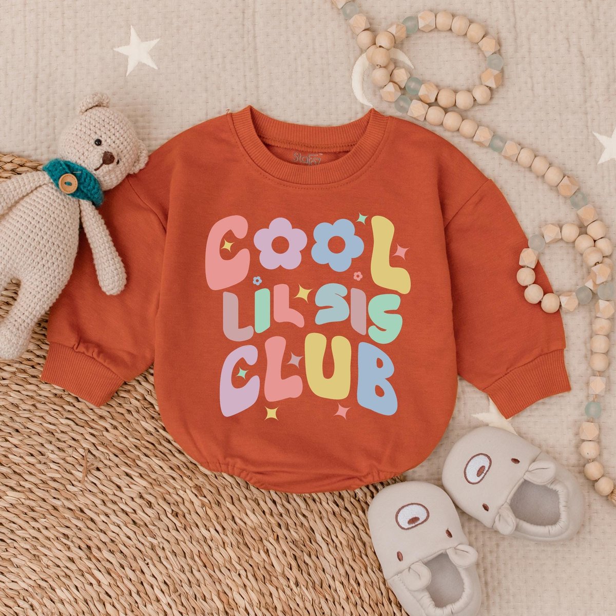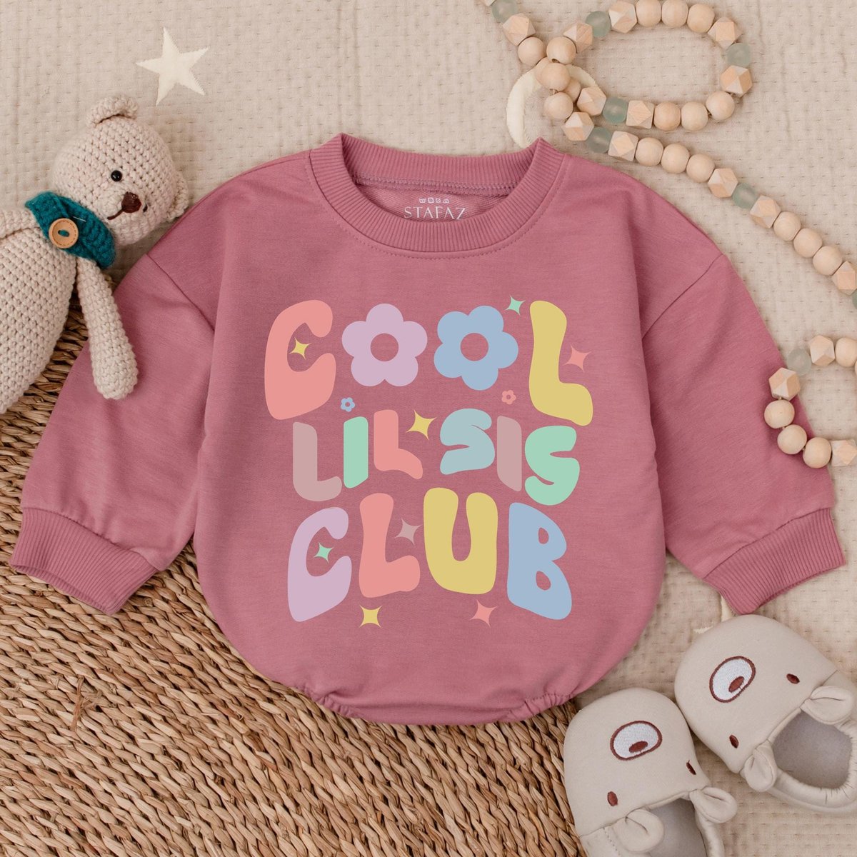 Cool Lil Sis Club Baby Romper Little Sister Clothes Floral Clothes Birthday Gift For Lil Sister Sibl