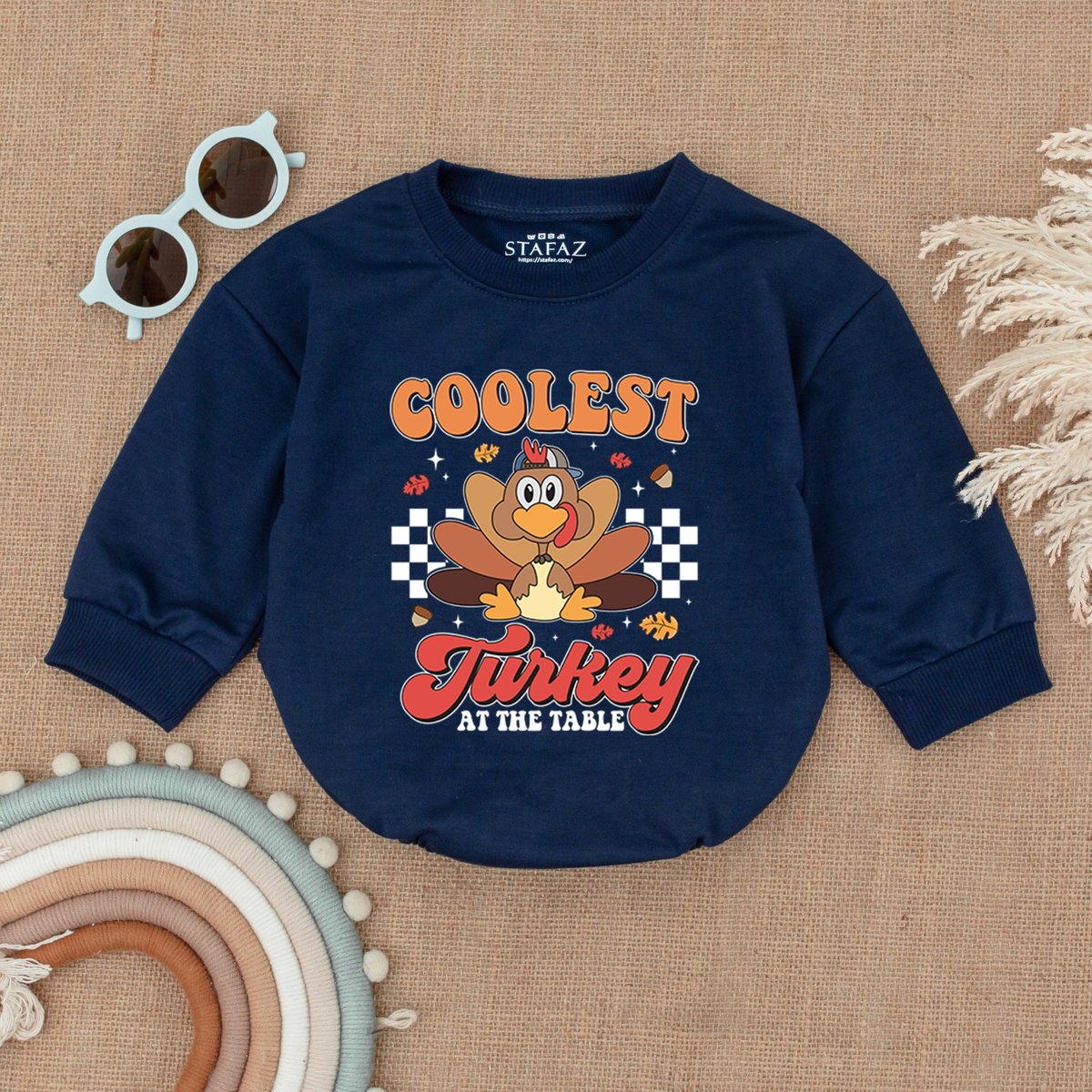 Coolest Turkey Bubble Romper Thanksgiving Baby Outfit Pumpkin Bubble Romper Fall Baby Outfit Autumn 174