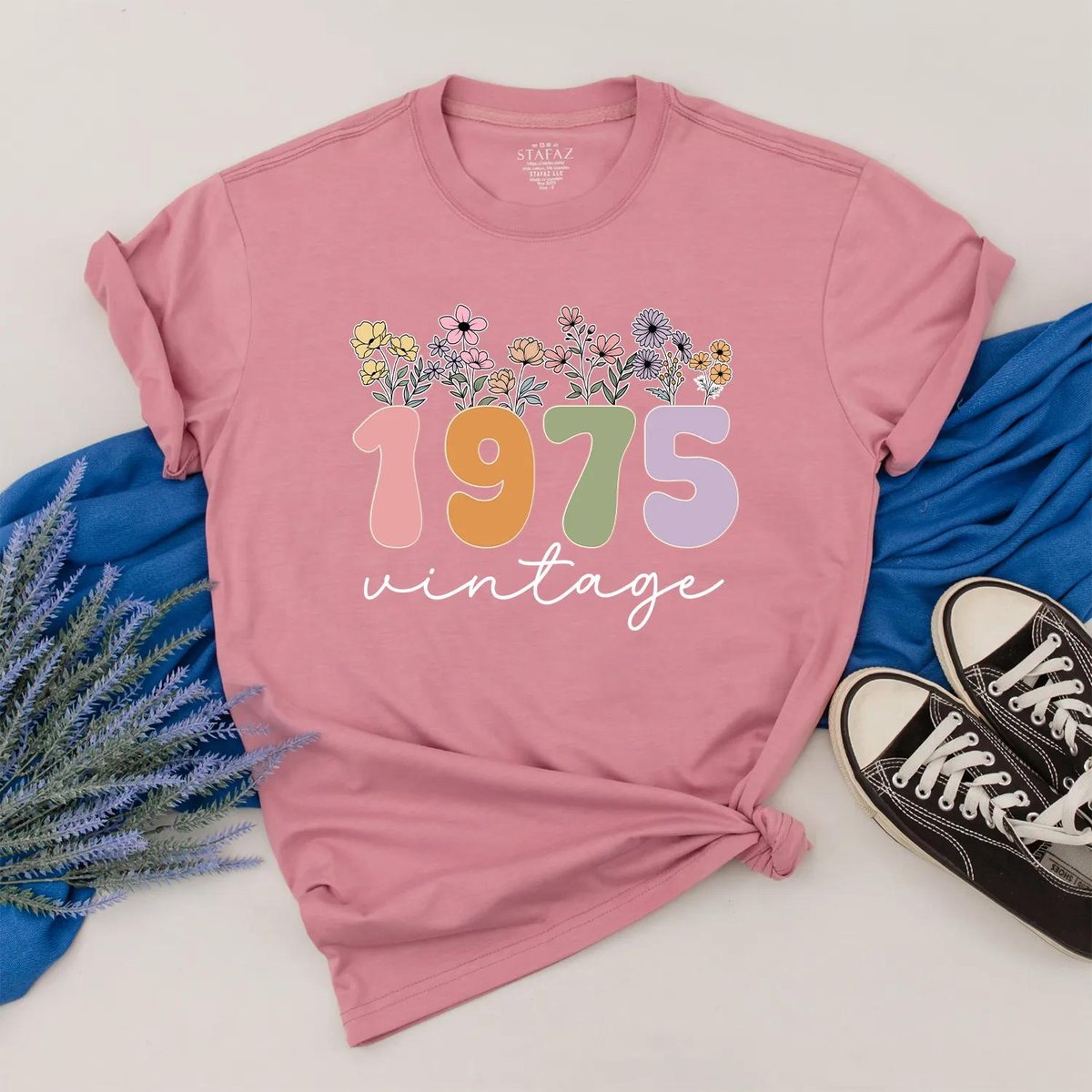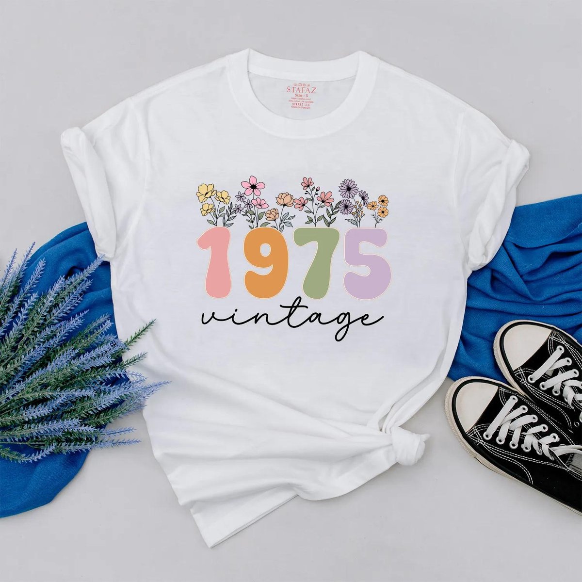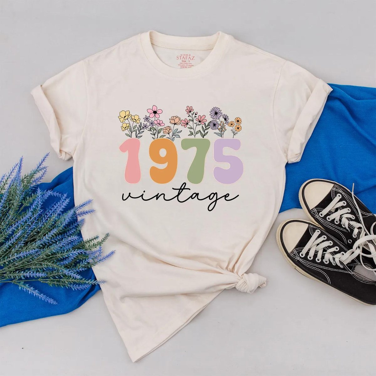 Custom 1975 Birthday Shirt with Floral Design Vintage 70s Aesthetic Outfit for Women Personalized Ye 430